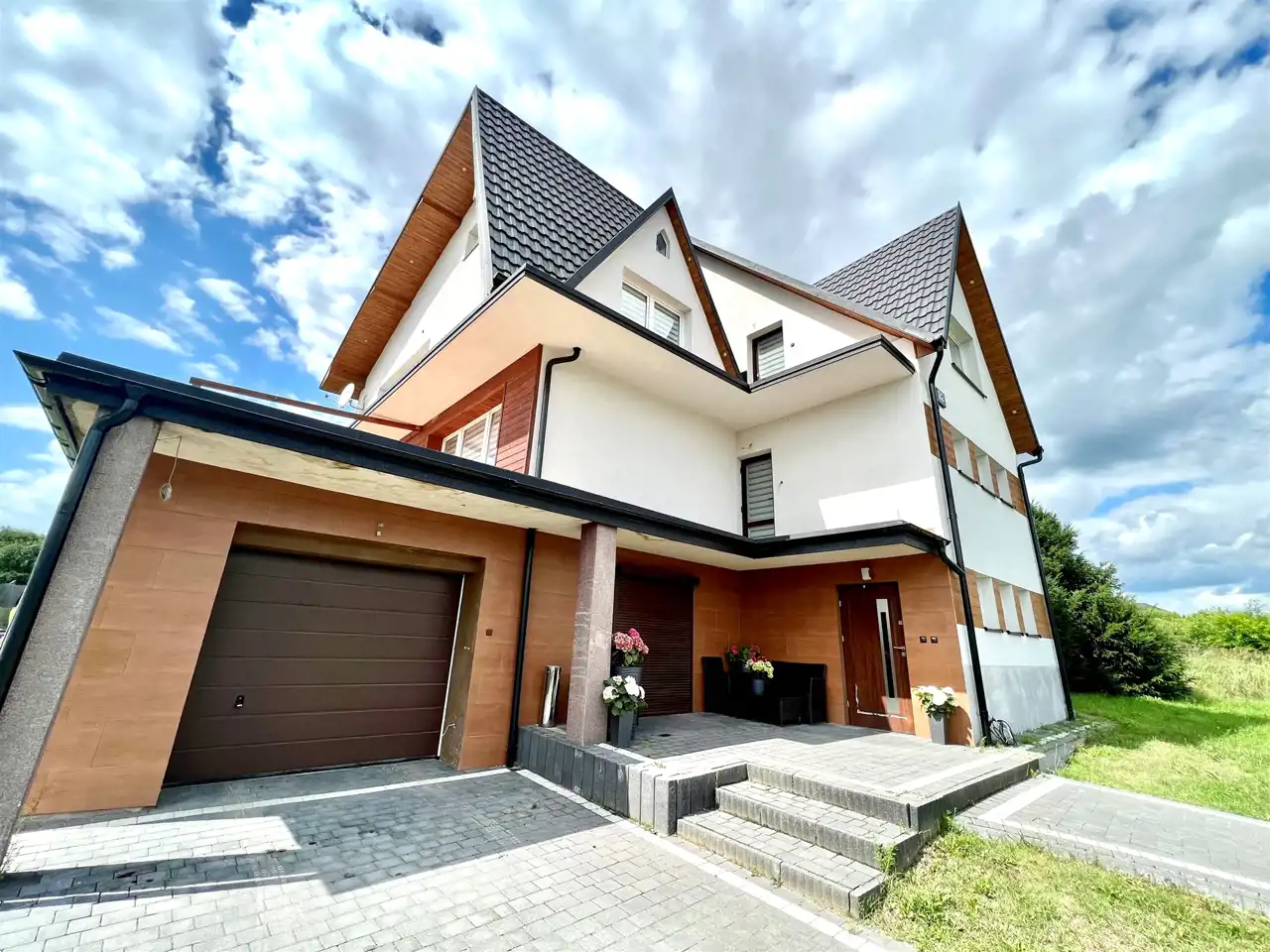 Dom o łącznej powierzchni użytkowej 270 m2 położony na działce o powierzchni około 2 900 m2 w otoczeniu pięknych krajobrazów. Dodatkowym atutem w okresie wiosenno-letnio-jesiennym jest duży, estetyczny zadaszony taras wykonany z litego drewna z posadzką betonową. Kolejnym plusem jest wygospodarowane miejsce do zabaw dla dzieci. Teren domu jest ogrodzony bramą z metalu i fasadą betonową co daje poczucie bezpieczeństwa dla mieszkańców domu.