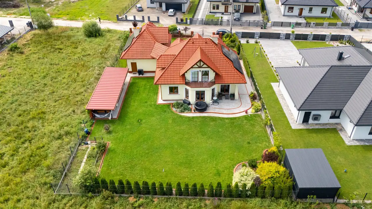 For sale—a spacious, standalone house measuring 241.65 m2 (total area: 278.94 m2) on a 1159 m2 plot of land in Masłów Pierwszy. The house is finished to a high standard.