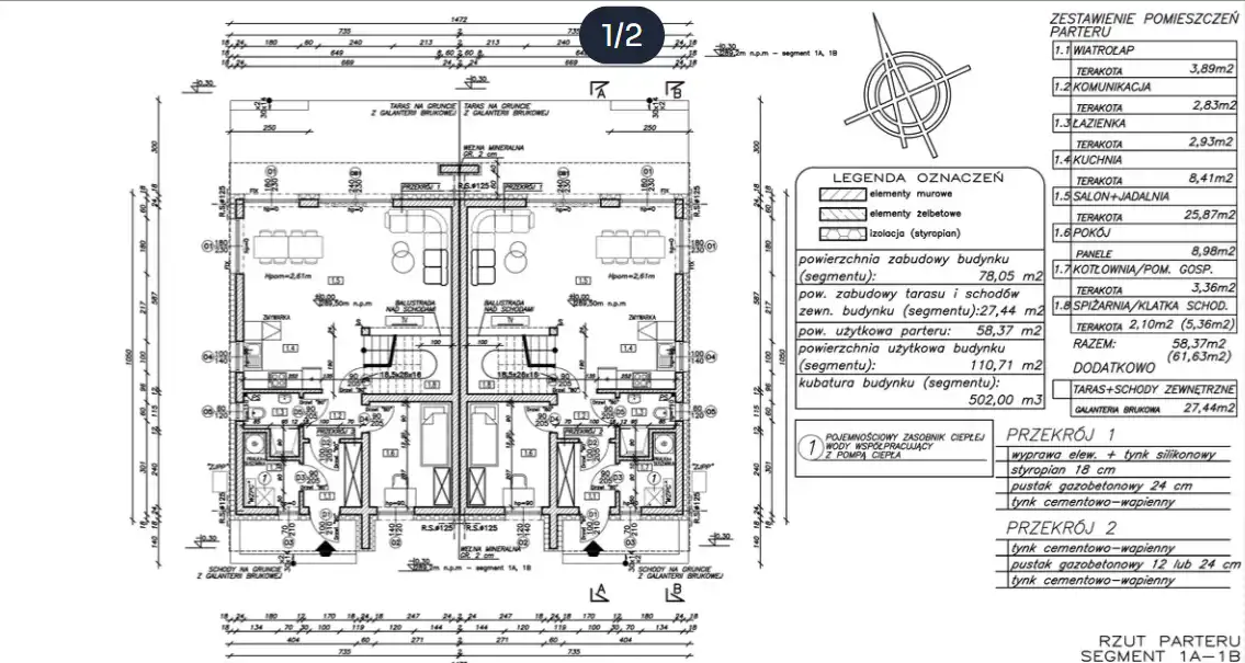 For sale a comfortable semi-detached single-family house (one half of a semi-detached building) in developer standard, located in a quiet, green area of Masłów Pierwszy, just 10 minutes from the centre of Kielce.