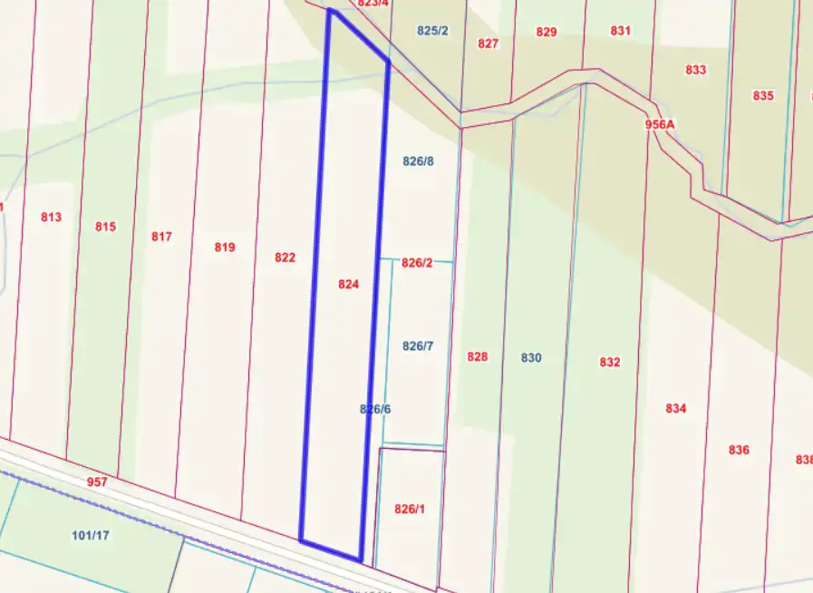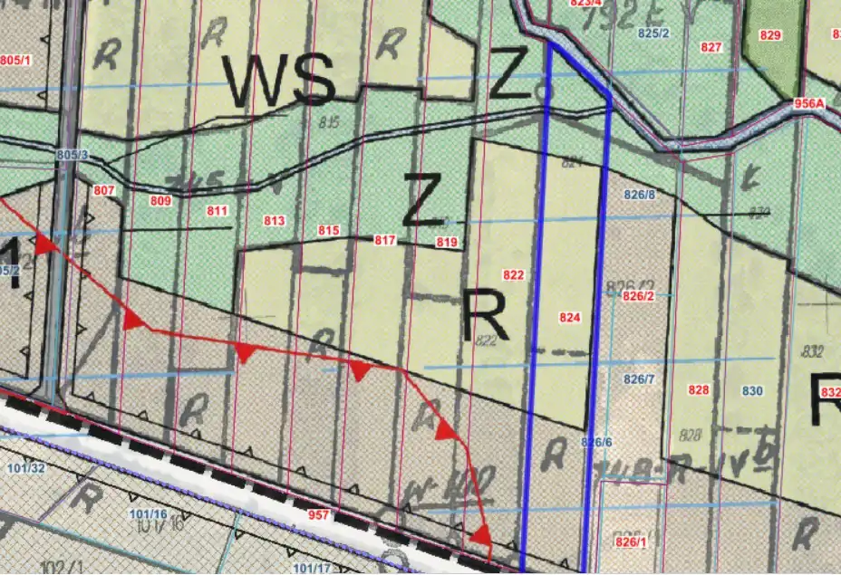 UWAGA! Część działki oznaczona jako R- rolna, jest na końcowym etapie przekształcenia przez urbanistę na działkę budowlaną. W niedługim czasie cała więc działka będzie widnieć jako budowlana.