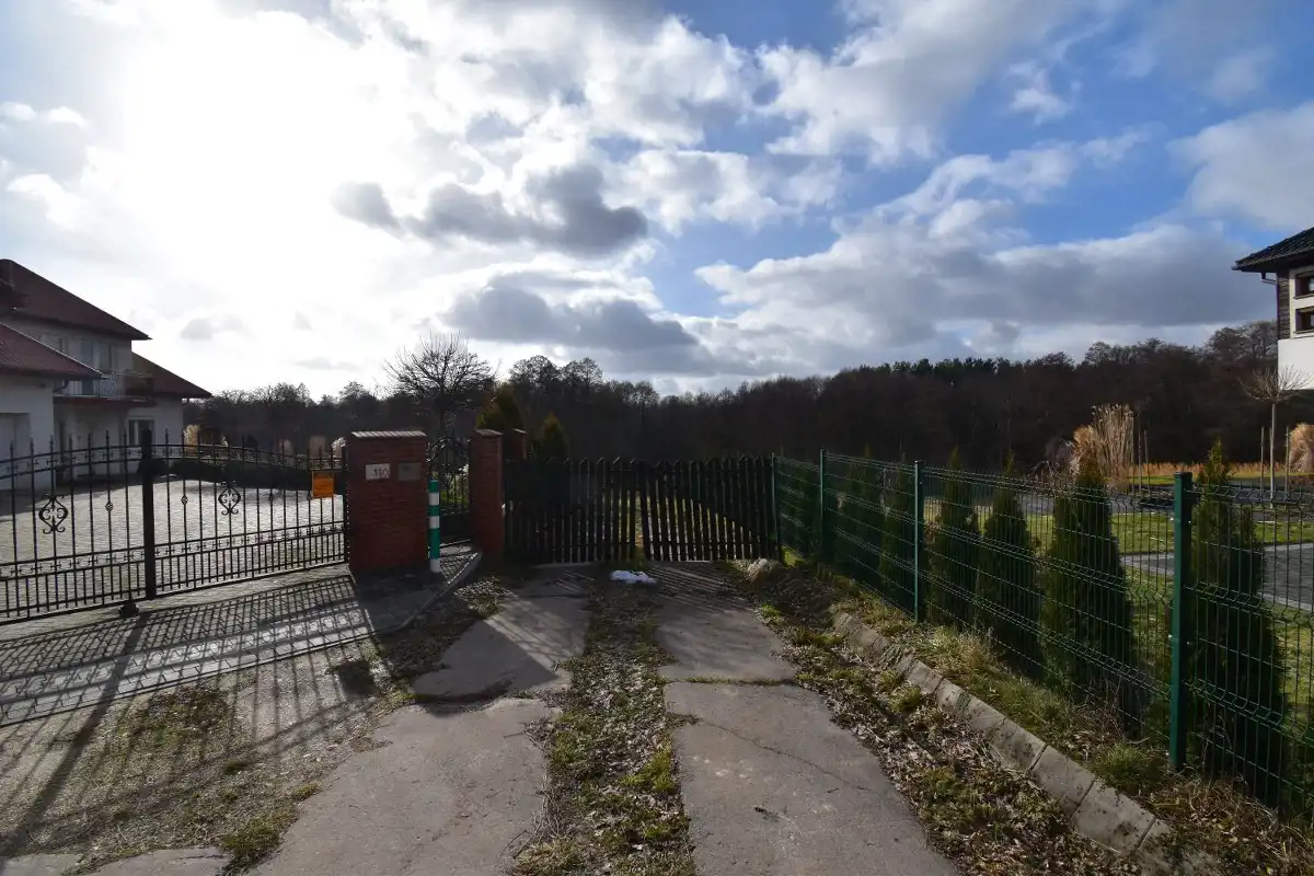 Działka położona na wzniesieniu z pięknym widokiem na okoliczne lasy, w kształcie zbliżonym do litery L, częściowo zagospodarowana (posadzone tuje, teren wyrównany, utwardzony, wykonana droga dojazdowa na terenie samej nieruchomości), ogrodzona, położona pośród terenów zielonych i domów jednorodzinnych.