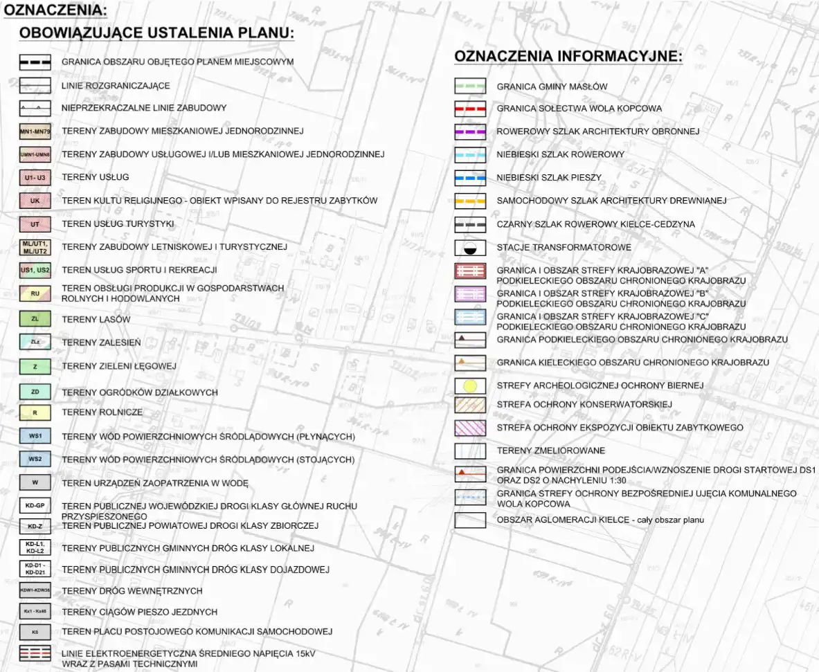 For sale: Unbuilt land property with a total area of 9545 sqm, located in Wola Kopcowa, municipality of Masłów. Access via asphalt road + directly via hardened road (concrete slabs). The property is covered by the Local Spatial Development Plan.