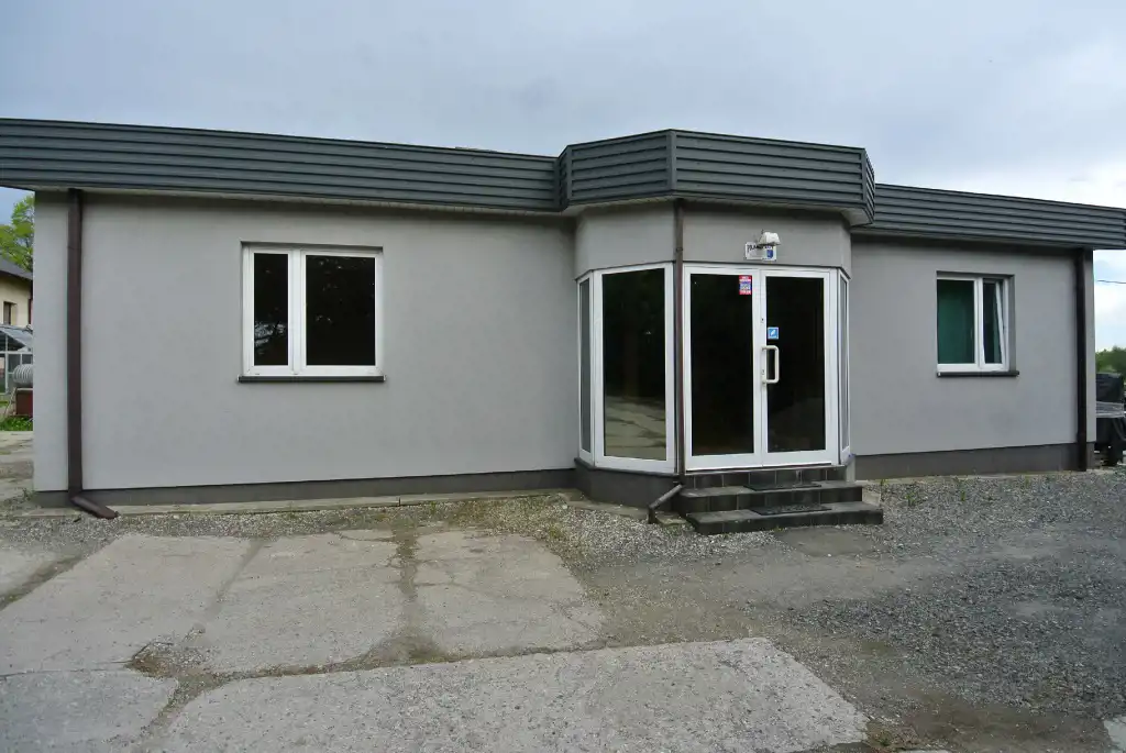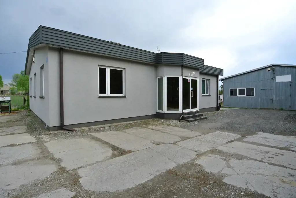 For rent, a hall with an area of approximately 214 sqm and an office building with an area of approximately 122 sqm located in Masłów Pierwszy.
