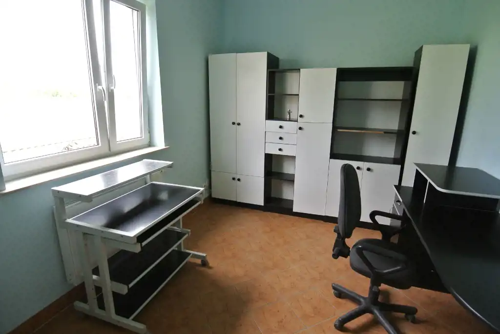 Biurowiec składa się z 6 pomieszczeń o powierzchniach ok. 11m2 - 13m2; recepcji o powierzchni 27 m2 oraz pomieszczenia sanitarnego o powierzchni 4 m2