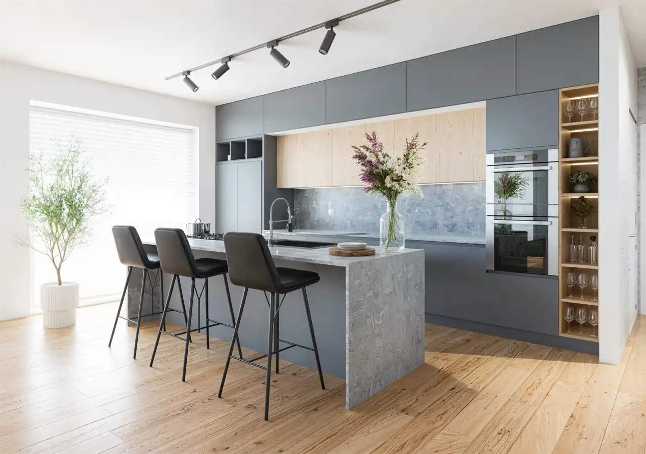 - salon z aneksem kuchennym o powierzchni 35,19 m2, z wyjściem na taras