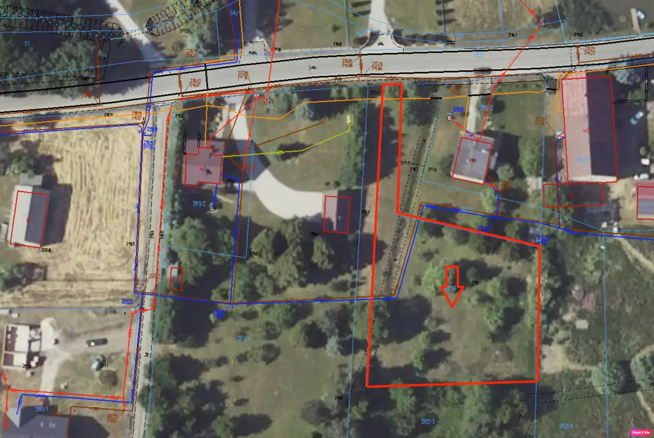 - Media Woda: na działce; Kanalizacja: na działce; Prąd: w ulicy; Gaz: brak