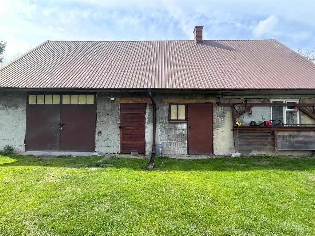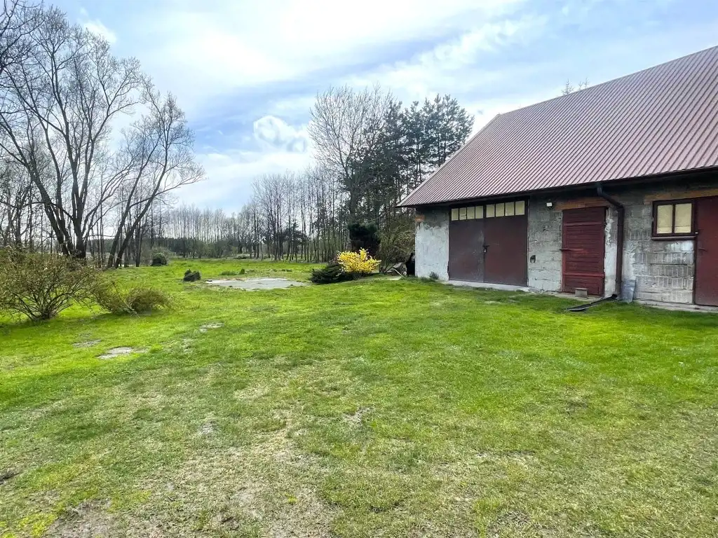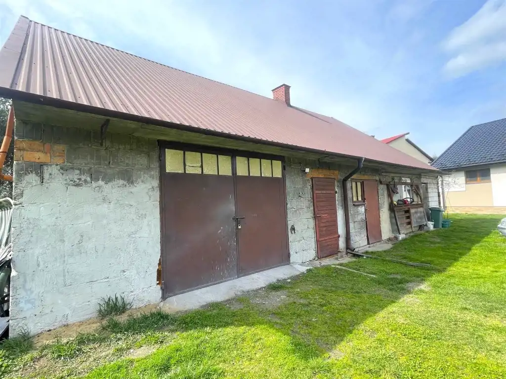 - Obok domu na posesji murowany budynek gospodarczy z garażem o powierzchni ok.120 m2, kryty blachą, prąd + siła.