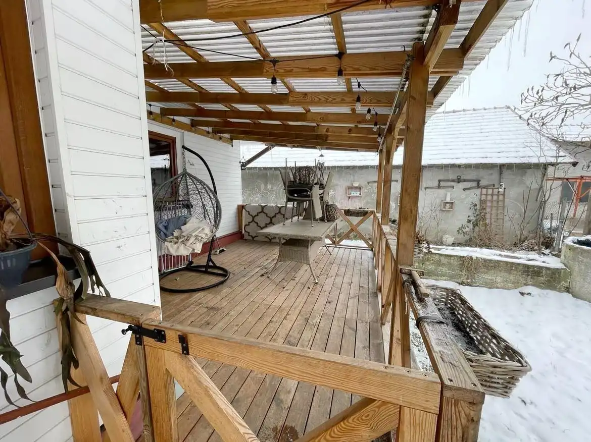 Wejście zadaszone altanką. Dobudowano werandę z zadaszeniem i oświetleniem.