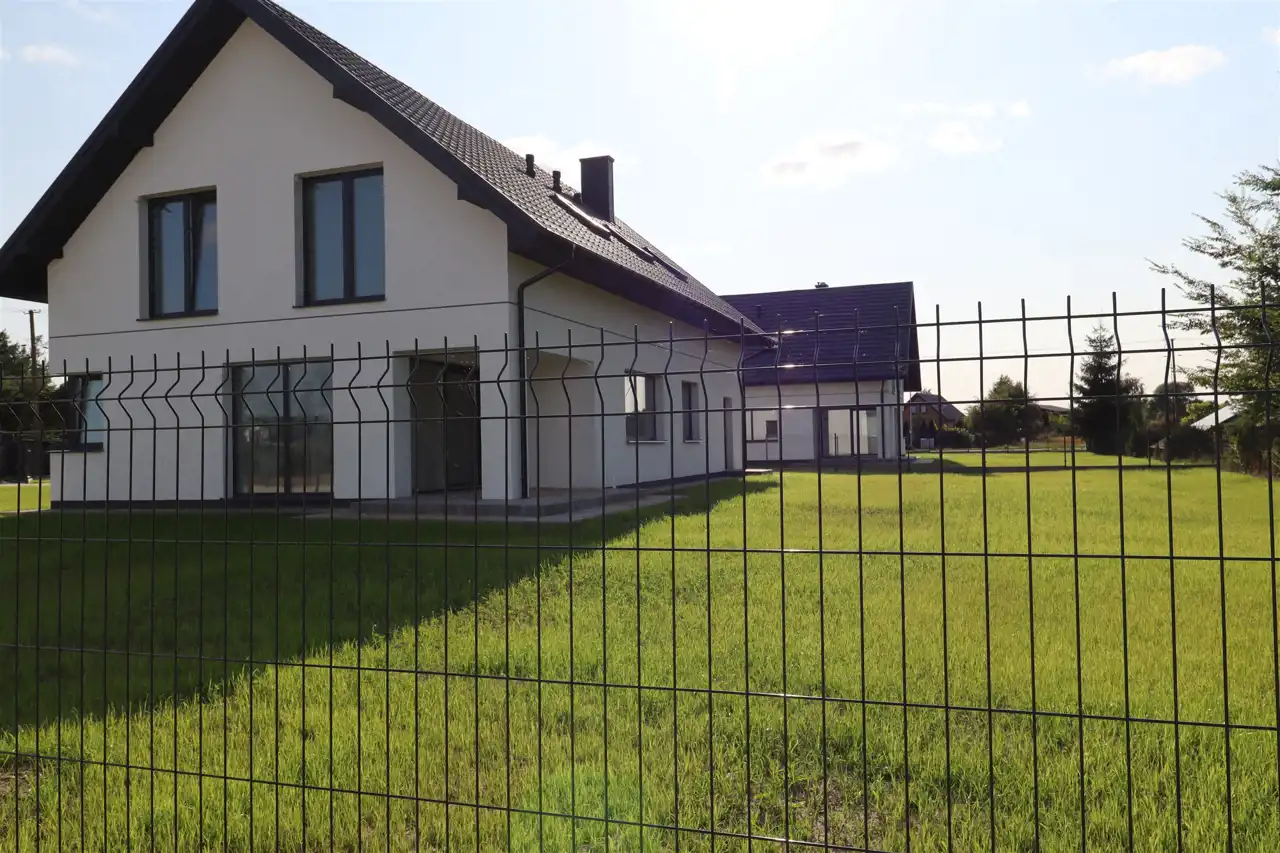 Budynek posadowiony na płaskiej 16 ar działce z ogrodzeniem panelowym. Przed domem kostka brukowa na podjeżdzie i tarasie.