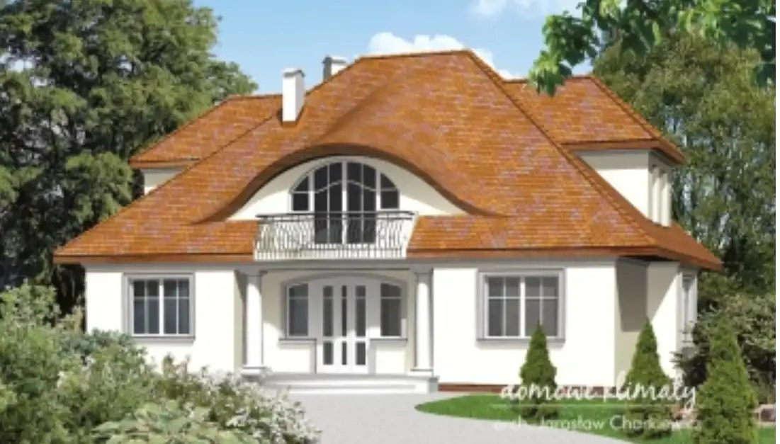 Miłe kolumienki strzegące wejście, dostojny dach i wzbierająca fala lukarny nad wejściem, zapewniając klimat. Wnętrze domu zapewniające niebywały komfort.