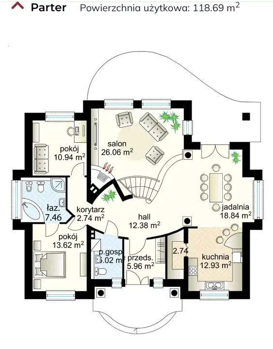 Na parterze znajdują się: