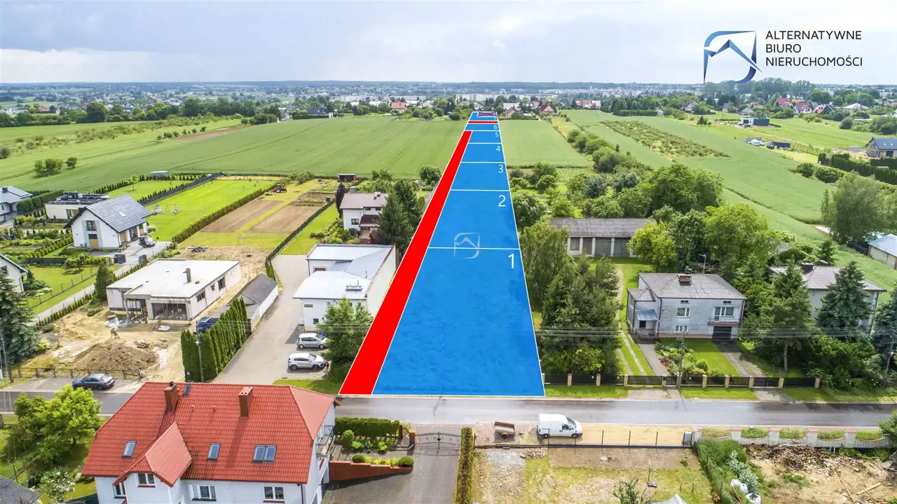 1. 900 m² – zabudowa jednorodzinna i usługowa, przy drodze, w cenie udziały w drodze wewnętrznej, front 17 m – 245 000 zł