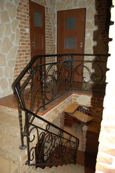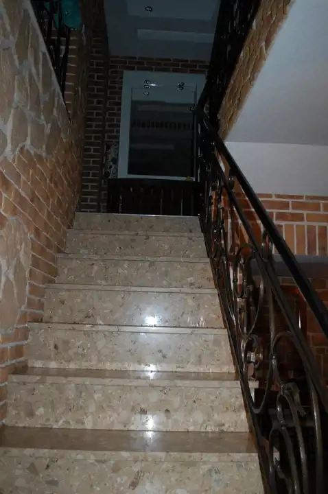 - korytarz – ok. 6,55m2 ( schody betonowe – lane wyłożone granitem, kute balustrady, terakota na