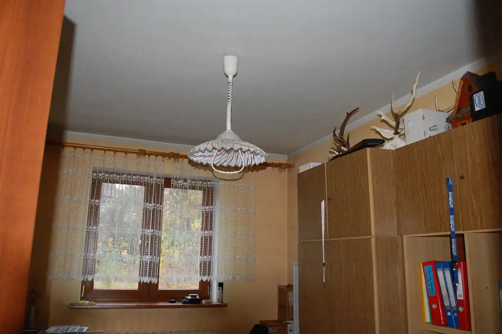 - pokój – ok. 14m2 (ściany gipsowane i malowane, Okno PCV, na podłodze wykładzina