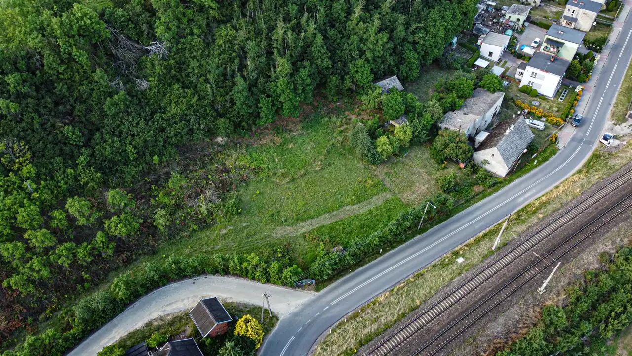 - Działka Niezagospodarowana, częściowo zalesiona, prostokąt