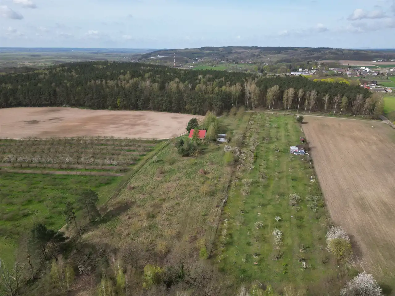 W najbliższej okolicy sady, pola, las i rozproszona zabudowa mieszkaniowa.