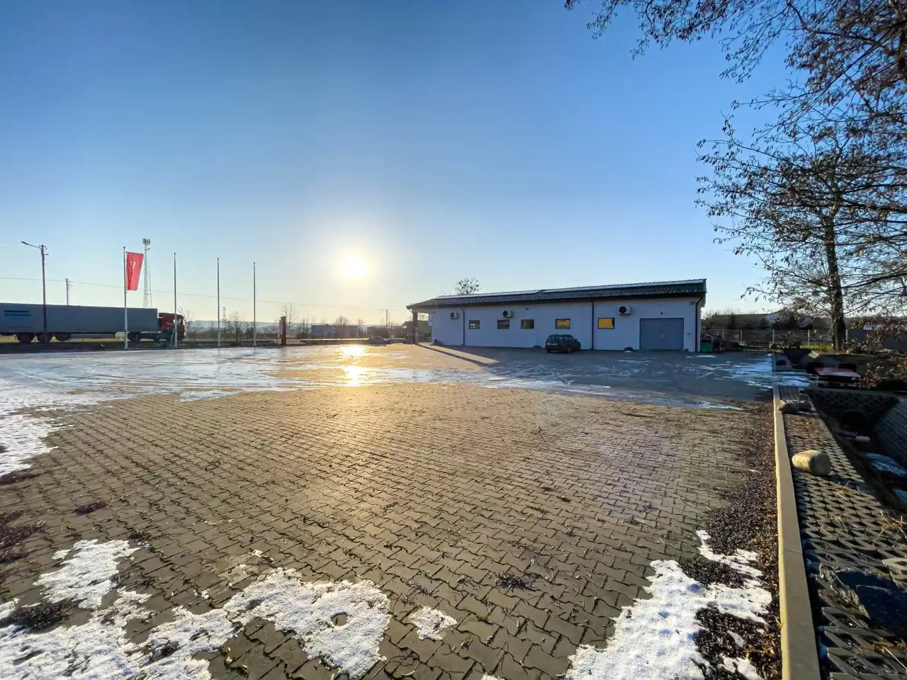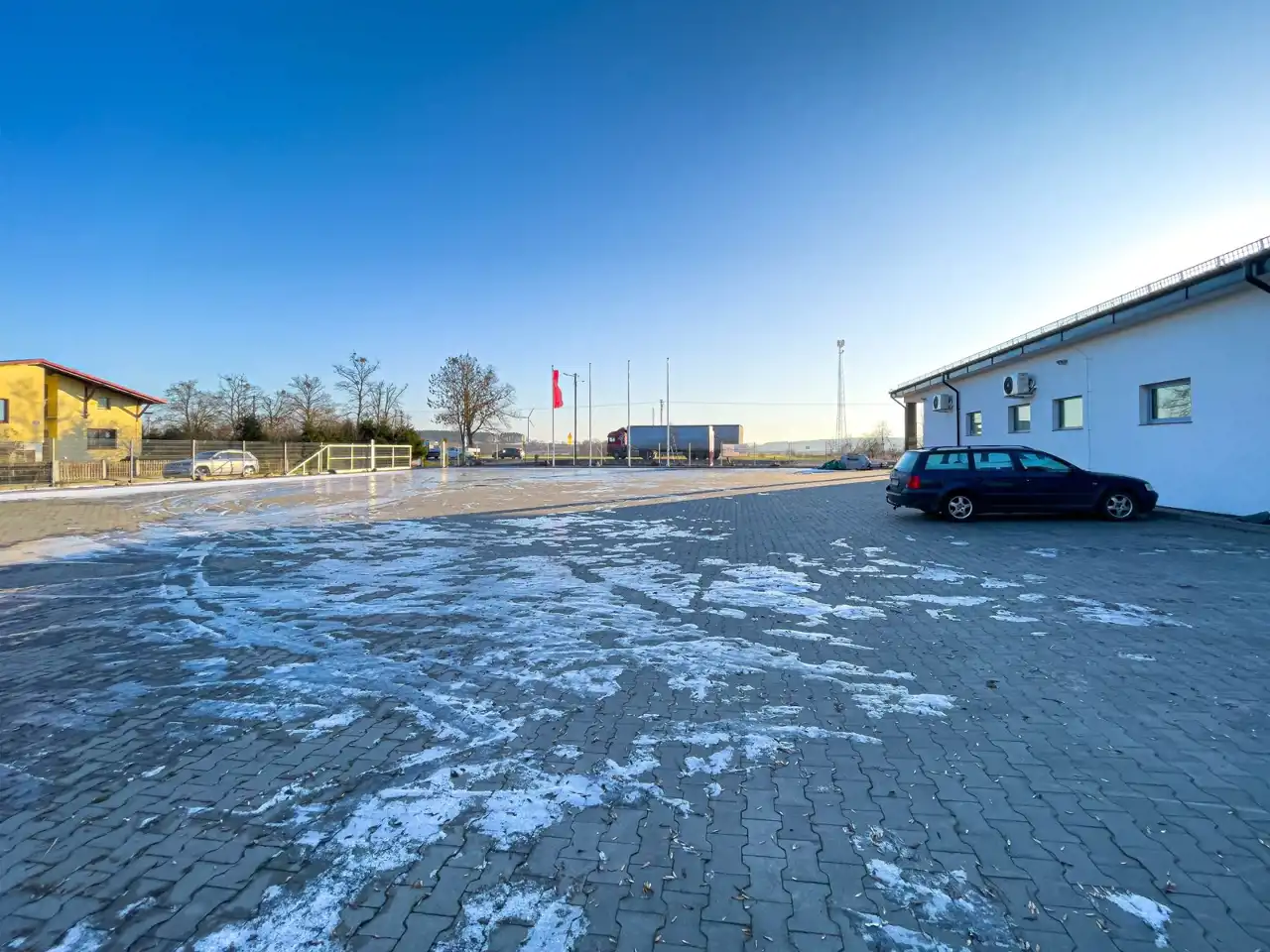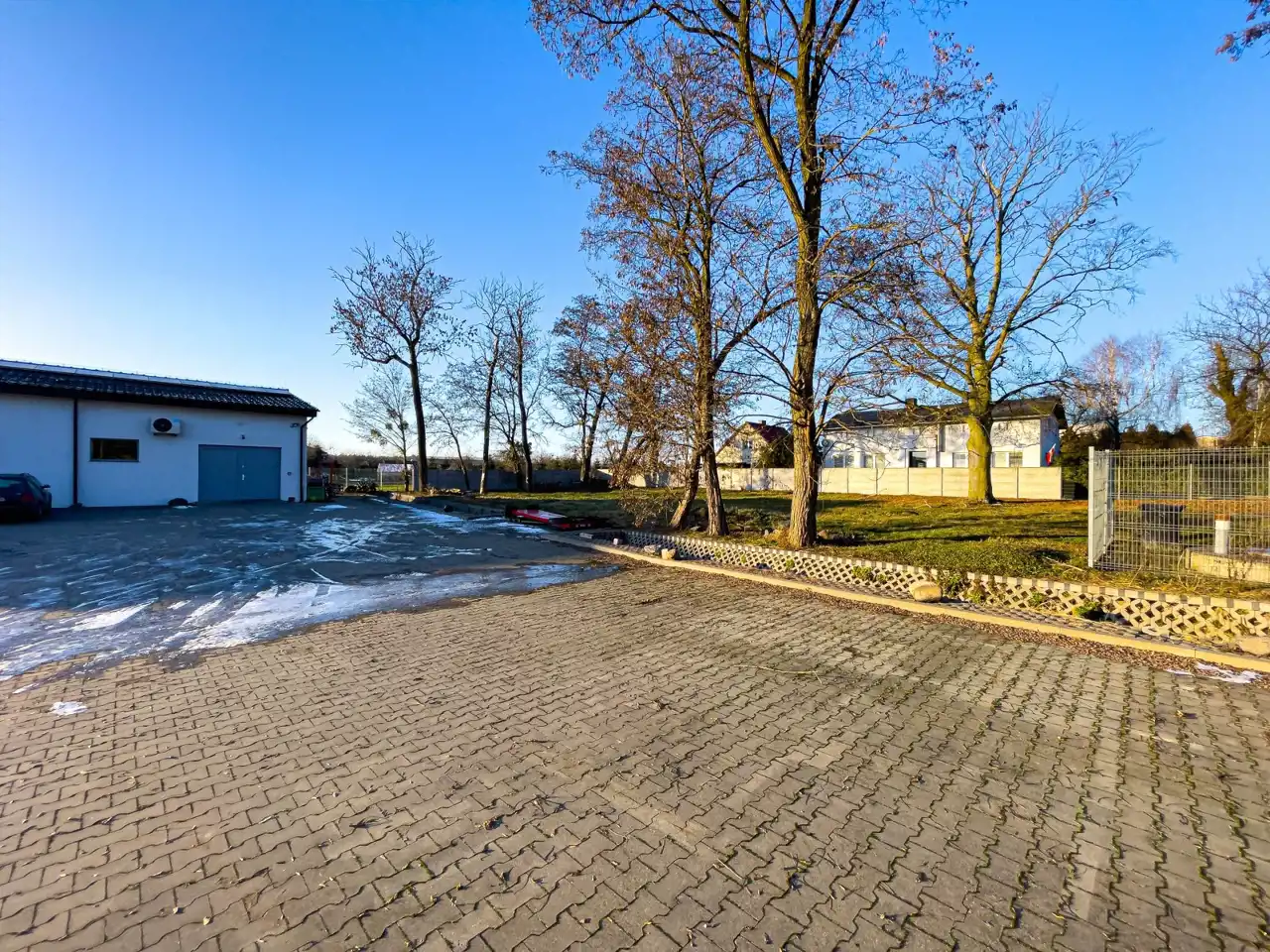 Nieruchomość znajduje się na dobrze zagospodarowanym, ustawnym terenie z wygodnym parkingiem dla klientów i dostawców, co usprawnia logistykę prowadzenia działalności. Całość jest funkcjonalna i daje możliwość dalszego zagospodarowania lub rozbudowy. Działka nr 214/9 posiada wydane warunki zabudowy na budynek o powierzchni do 500 m².
