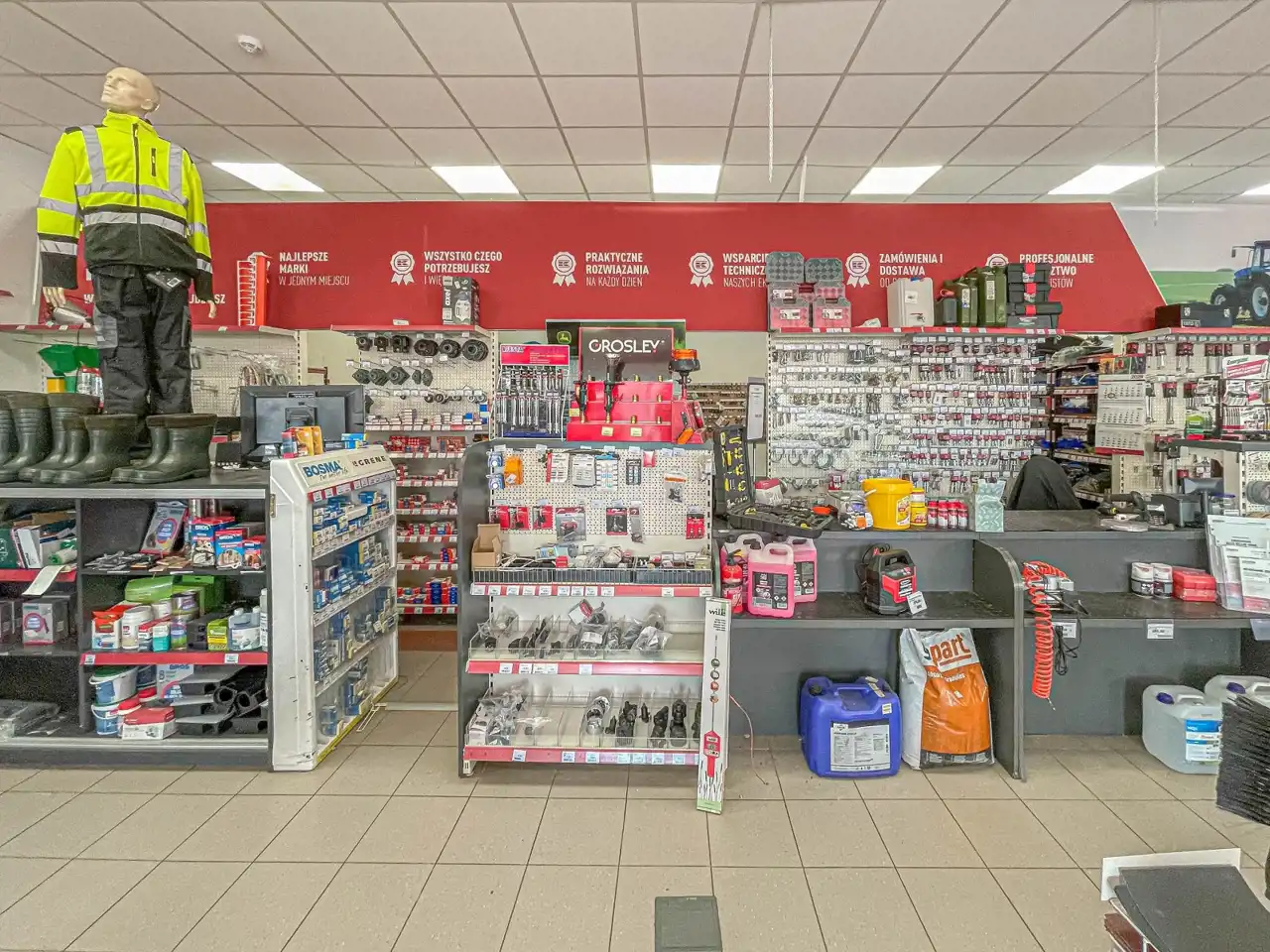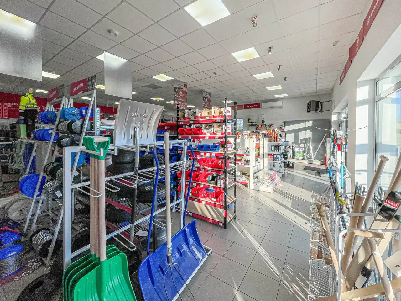 Funkcjonalny rozkład pomieszczeń - podzielony na część sprzedażową, magazynową, socjalną oraz biurową.