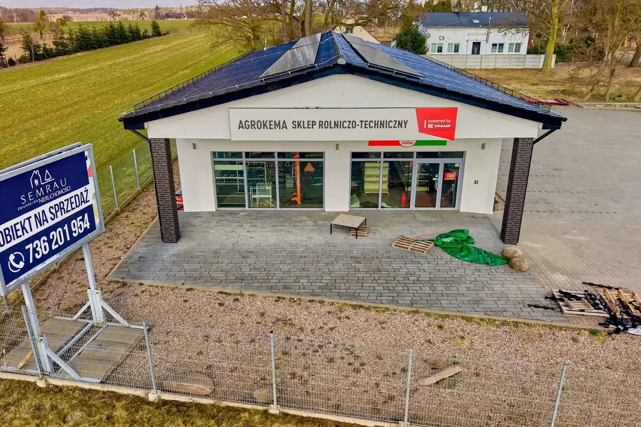 Oferujemy wolnostojący, parterowy budynek o przeznaczeniu handlowo-usługowym wraz z dwiema przyległymi działkami.