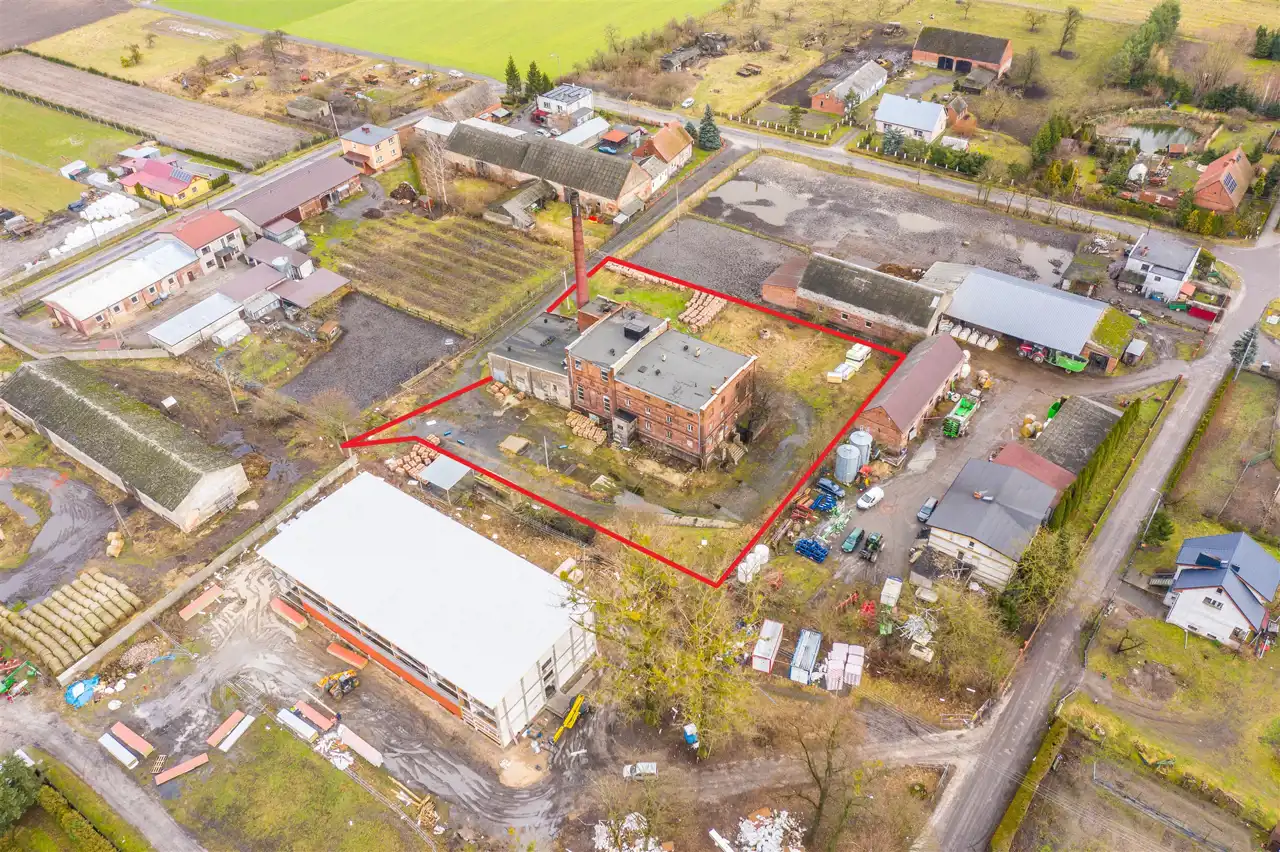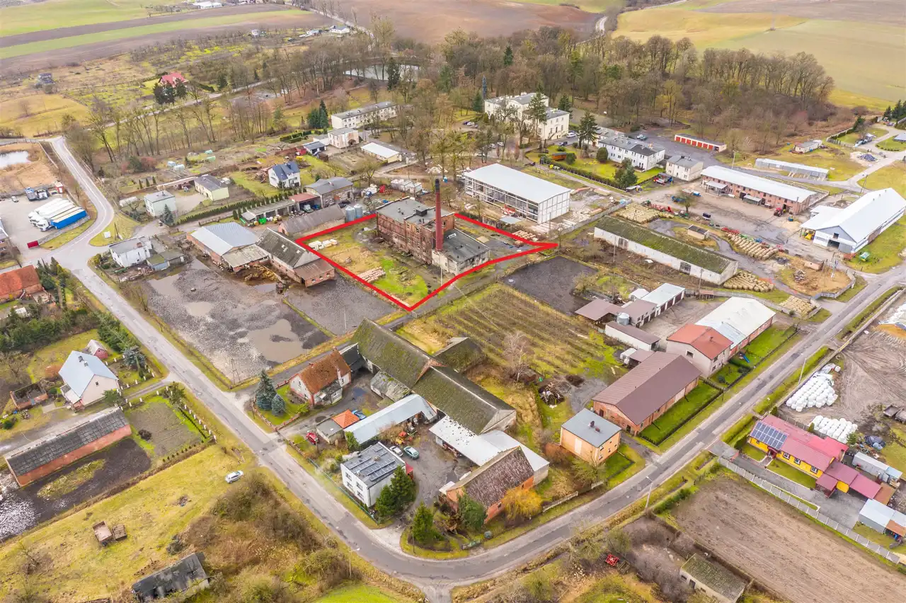 W skład nieruchomości wchodzi budynek starej gorzelni oraz przyległe zabudowania gospodarcze.
