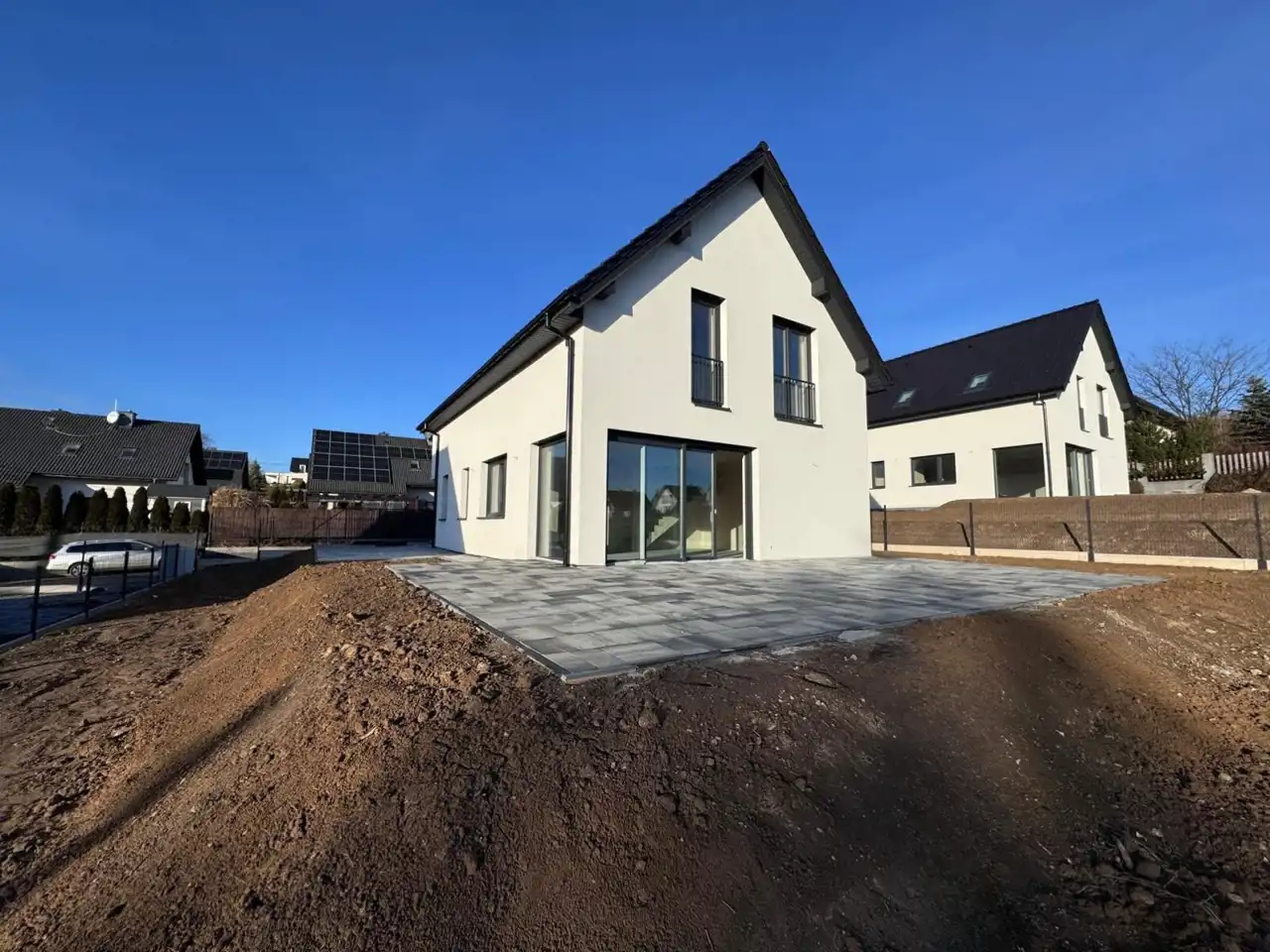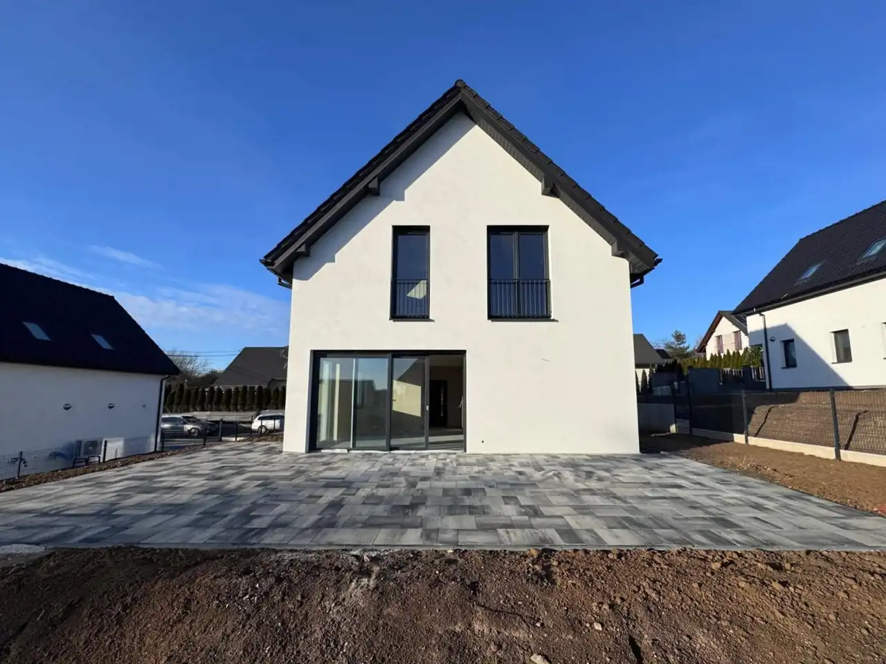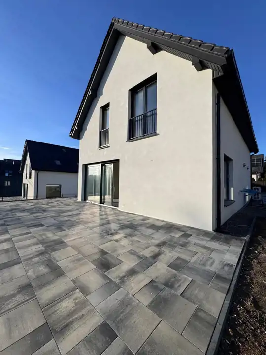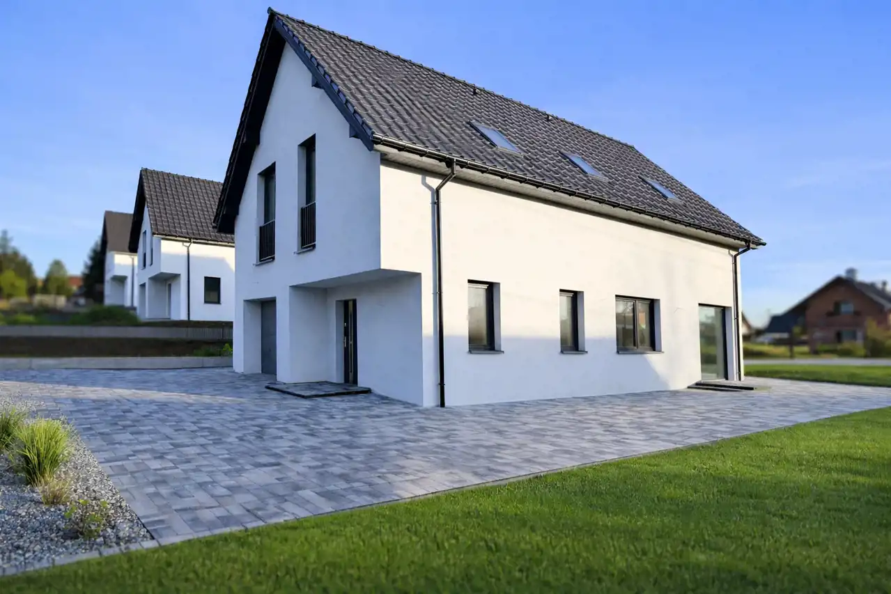 - 3 miejsca parkingowe, teren wybrukowany (możliwa opcja z garażem w bryle domu)