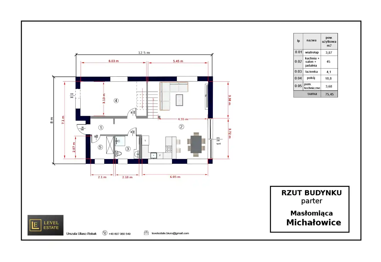 Lokalizacja tej nieruchomości w gminie Michałowice to świetna opcja dla rodzin, które szukają wygodnego, spokojnego miejsca do życia z przestrzenią i komfortem.