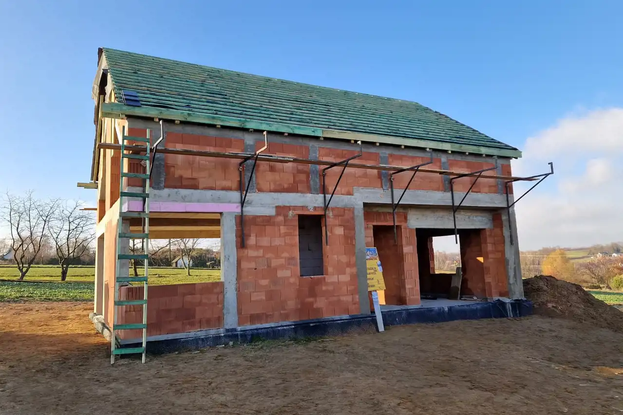 - ściany fundamentowe - pustak szalunkowy zabetonowany z wieńcem żelbetowym na górnej warstwie;