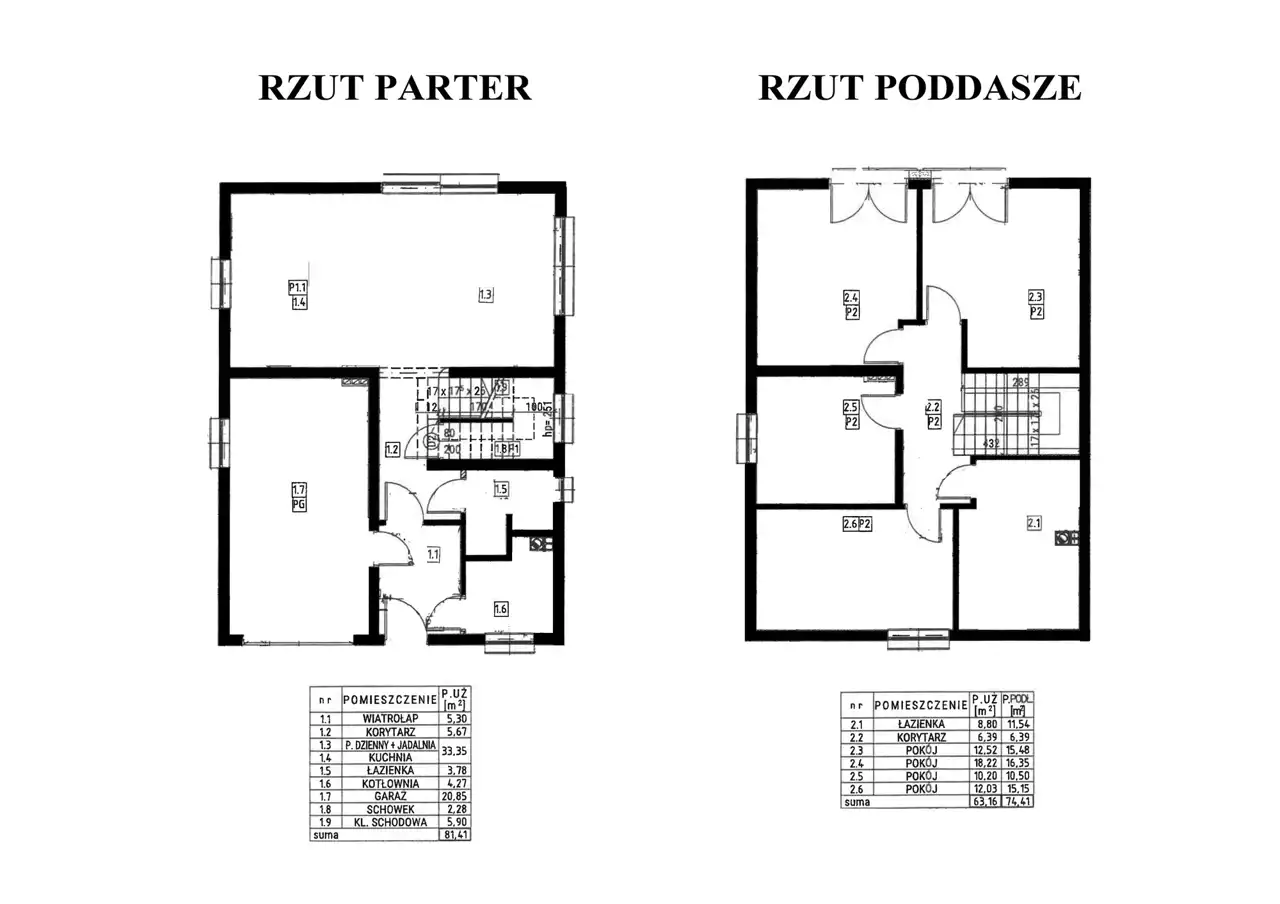 Poddasze: łazienka (8,8m2), korytarz (6,39m2), pokój (12,52m2), pokój (18,22m2), , pokój (10,22m2), pokój (12,03m2)