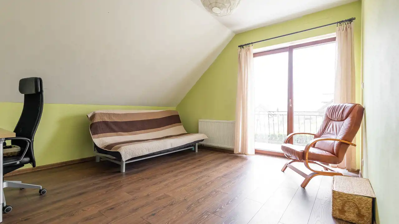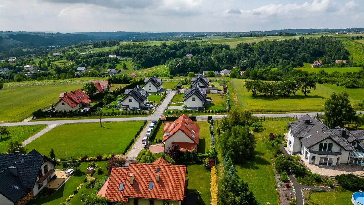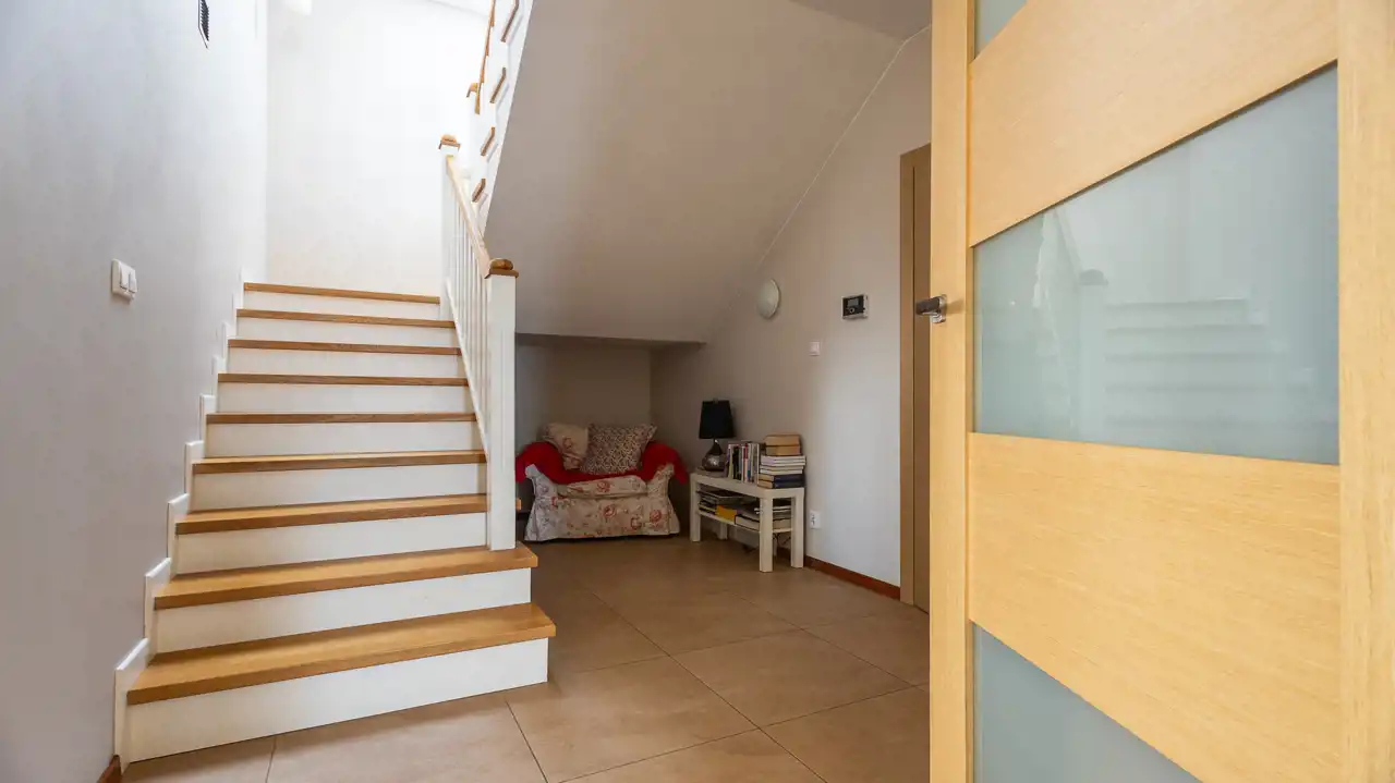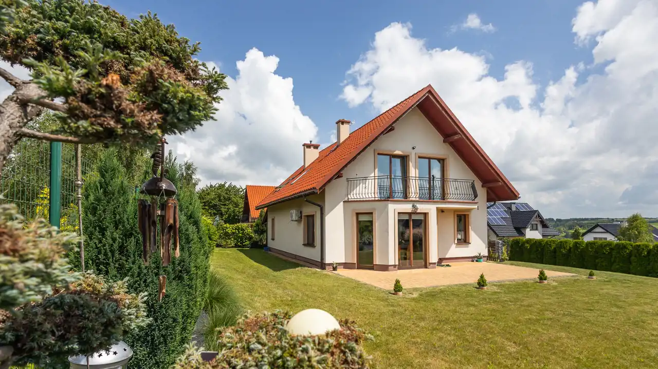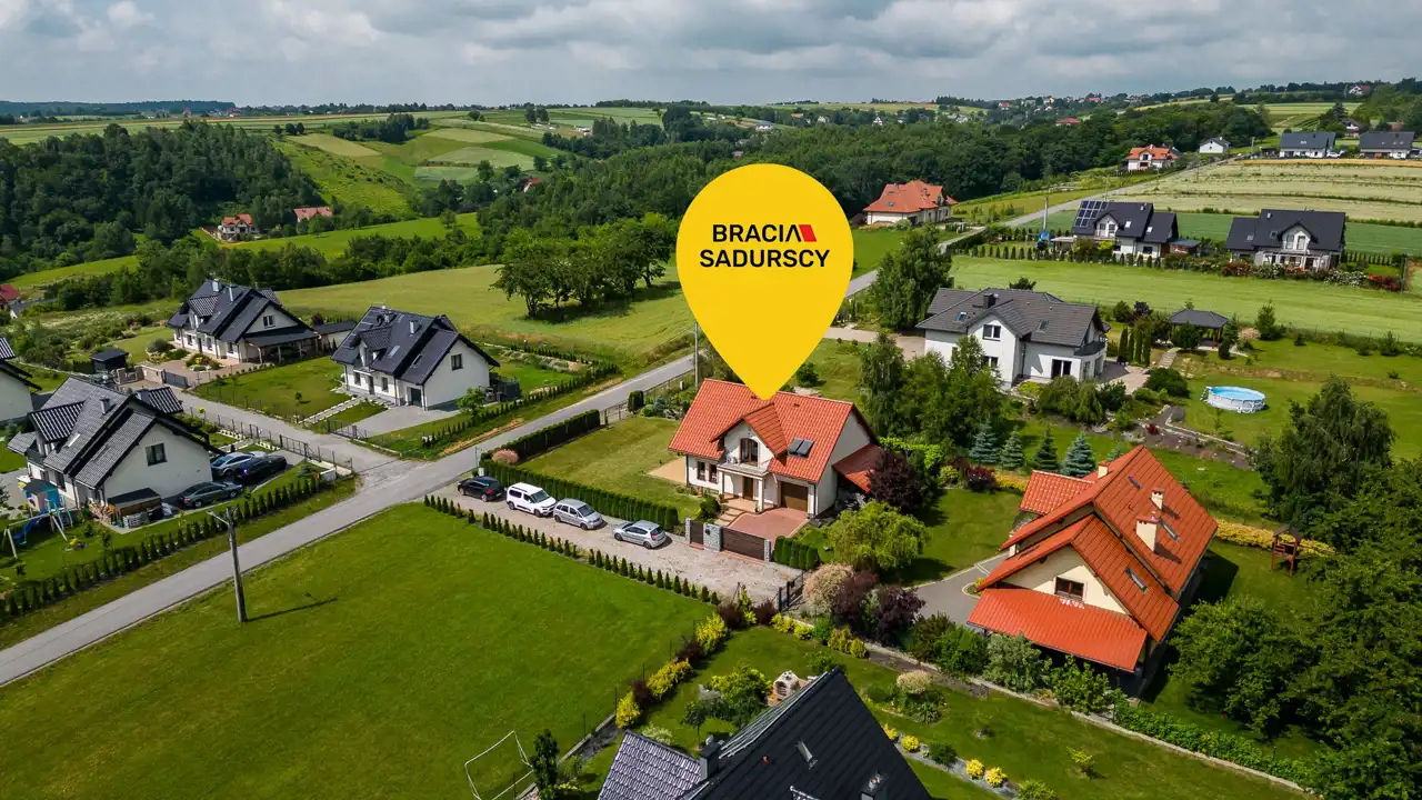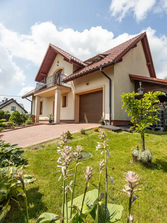 Dom jest ogrzewany gazowo, przy czym w przedpokoju oraz łazienkach zastosowano ogrzewanie podłogowe, co zapewnia komfort ciepła w każdym pomieszczeniu. Okolica, w której się znajduje, jest doskonała - zaledwie 20 minut drogi od centrum Krakowa, zapewniając jednocześnie ciszę i spokój. Na działce znajdują się również krzewy ozdobne, które dodają uroku temu miejscu.