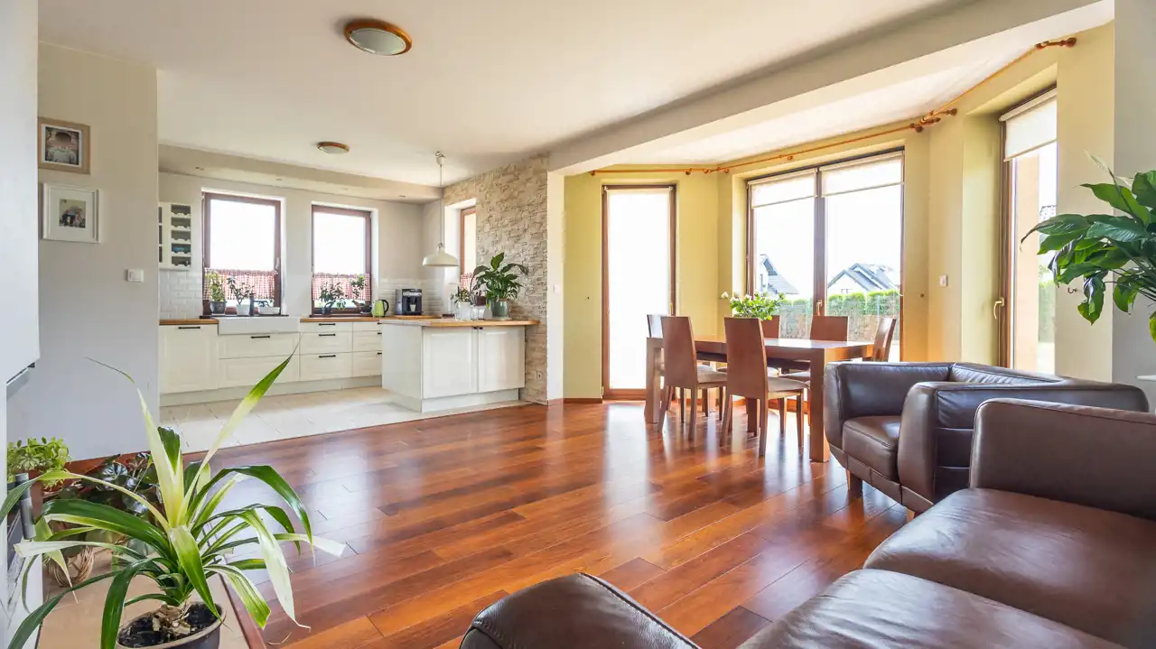 Powierzchnia mieszkalna domu wynosi około 123m2, a dodatkowo posiada garaż.