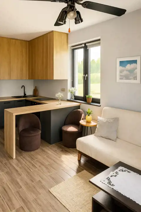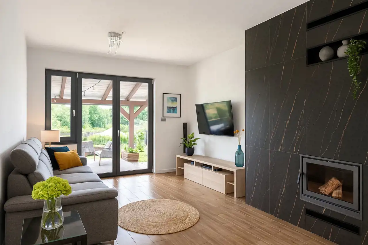 Dzięki temu możliwe jest komfortowe zamieszkanie dwóch rodzin lub adaptacja części domu na działalność usługową – np. gabinet, biuro, pracownię lub niezależne studio do wynajęcia.