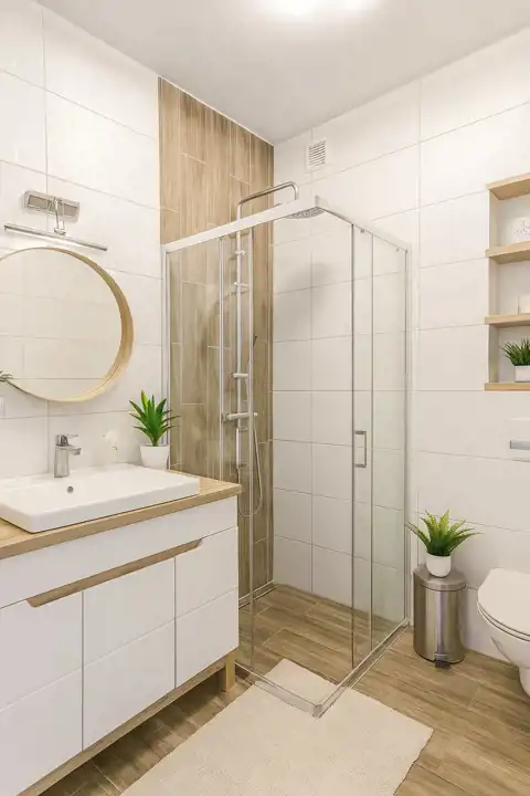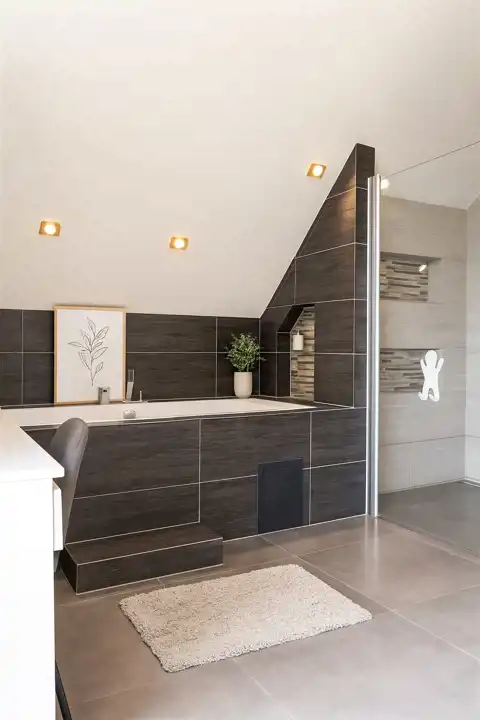 Duża łazienka – 11 m² (powierzchnia podłogi 14 m²) z wanną, prysznicem i dwiema umywalkami