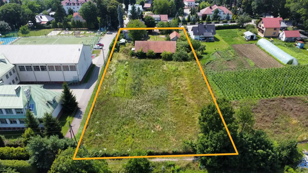 - Działka częściowo zagospodarowana, lekko nachylona, prostokąt
