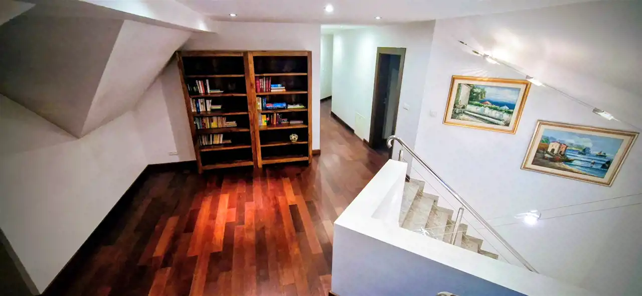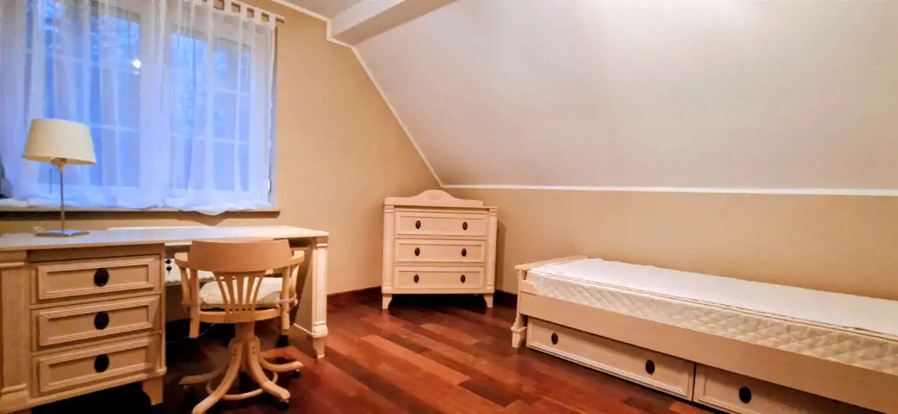 Układ bardzo funkcjonalny, kuchnia ze spiżarnią, kotłownia z pralnią i suszarnią i wyjściem do ogrodu, liczne wbudowane szafy garderobiane, otwarta przestrzeń klatki schodowej, przestronne sypialnie, pokój dzienny z podziałem na część oficjalną i prywatną- stylowy pokój relaksu z kominkiem, jadalnię, przestronne łazienki, dużo światła dziennego i piękny widok z okien. DOM WART SWOJEJ CENY.