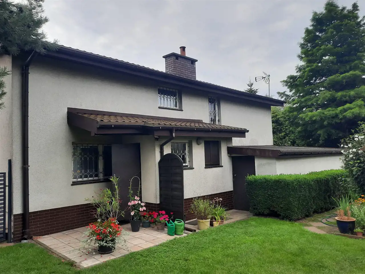 Dom znajduje się na większej działce, zamieszkiwanej przez właścicieli.