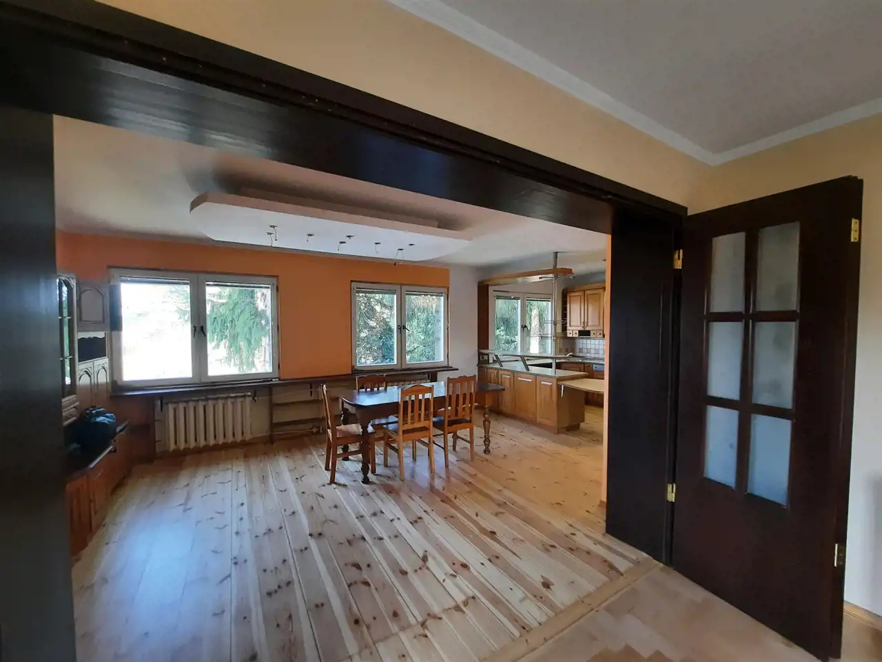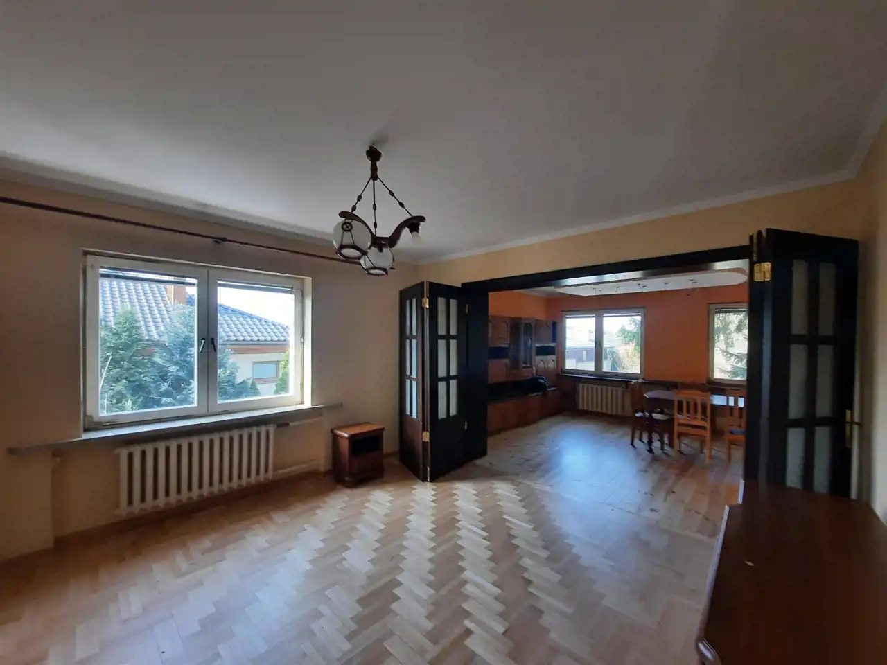 Podłogi drewniane, okna PCV.
