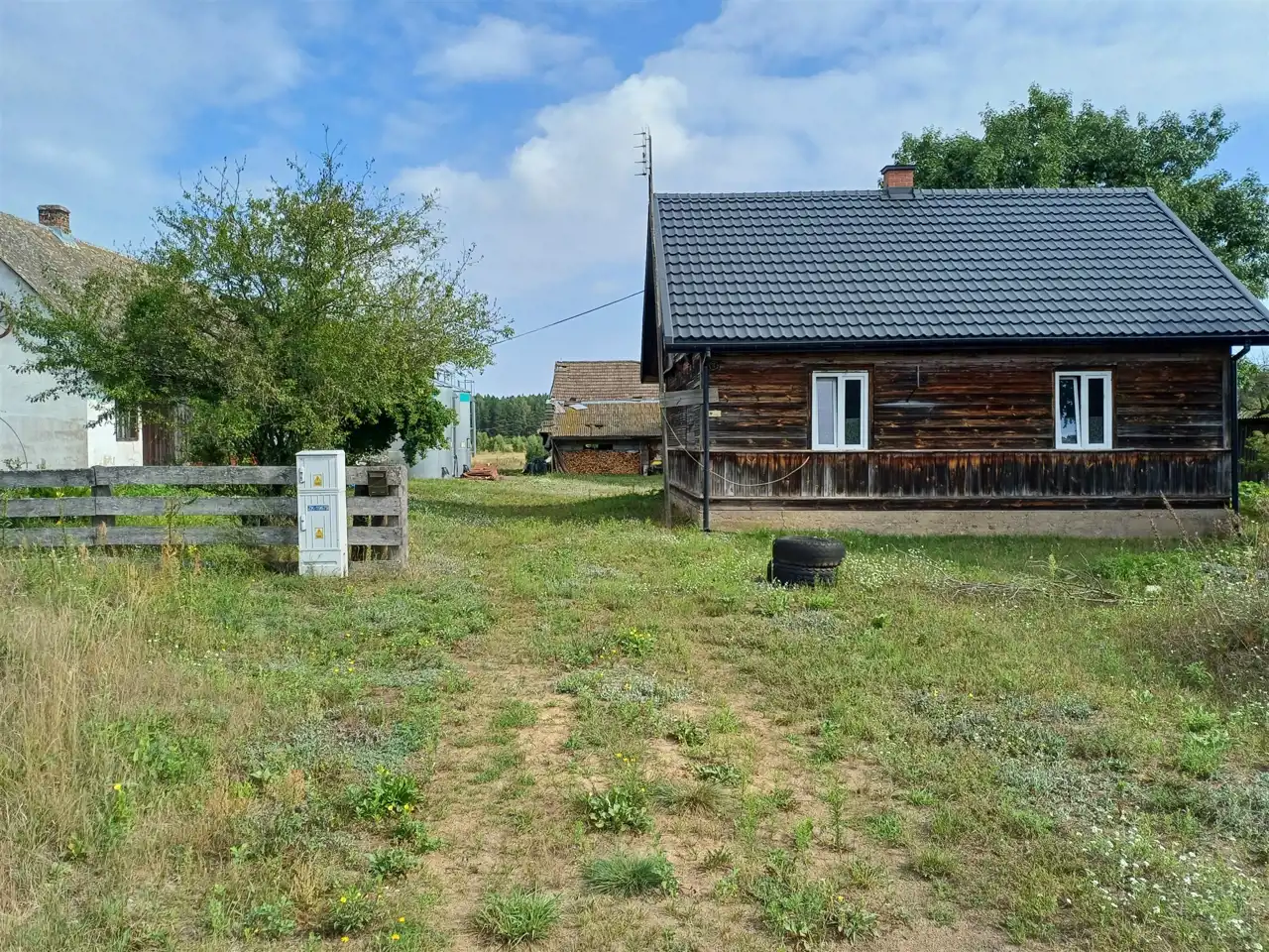 Na działce o powierzchni 7,88 ha znajduje się dom o konstrukcji drewnianej o pow. użytkowej 58,5 mkw. Budynek składa się się z otwartej kuchni z piecem kaflowym, 2 pokoi, łazienki oraz piwnicy. Dom ogrzewany piecem oraz piecem kaflowym. Możliwość zagospodarowania poddasza. Dojazd bezpośrednio z drogi wojewódzkiej oraz z drogi polnej.