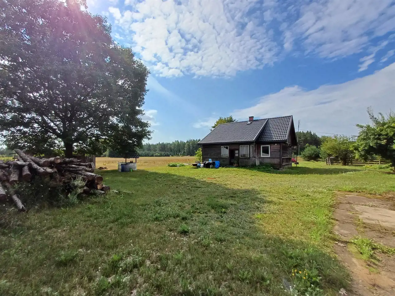 - dom o konstrukcji drewnianej o pow. użytkowej 58,5 mkw. Budynek składa się się z otwartej kuchni z piecem kaflowym, 2 pokoi, łazienki oraz piwnicy. Dom ogrzewany piecem oraz piecem kaflowym. Możliwość zagospodarowania poddasza. Dojazd bezpośrednio z drogi wojewódzkiej.