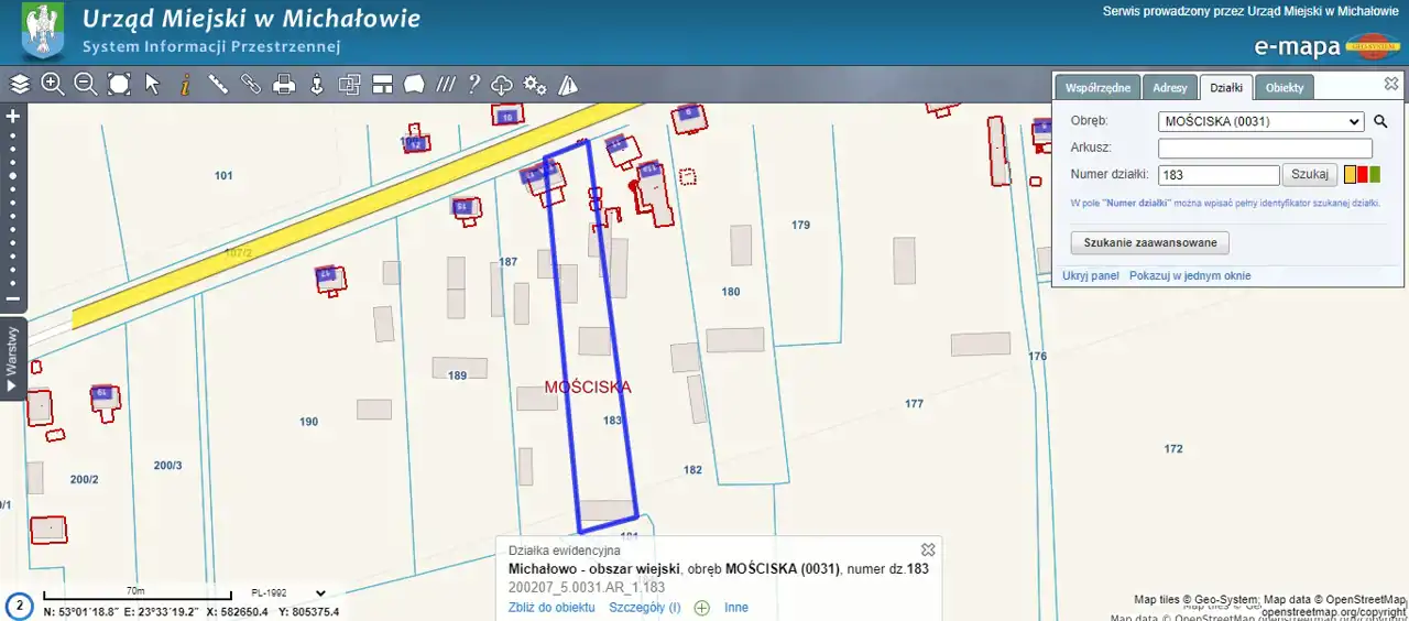 Numer geodezyjny działki - 183.