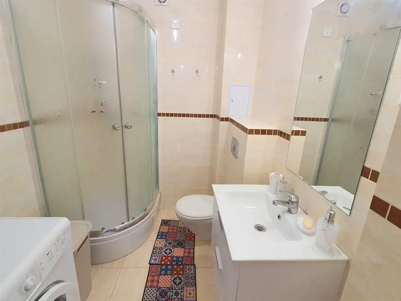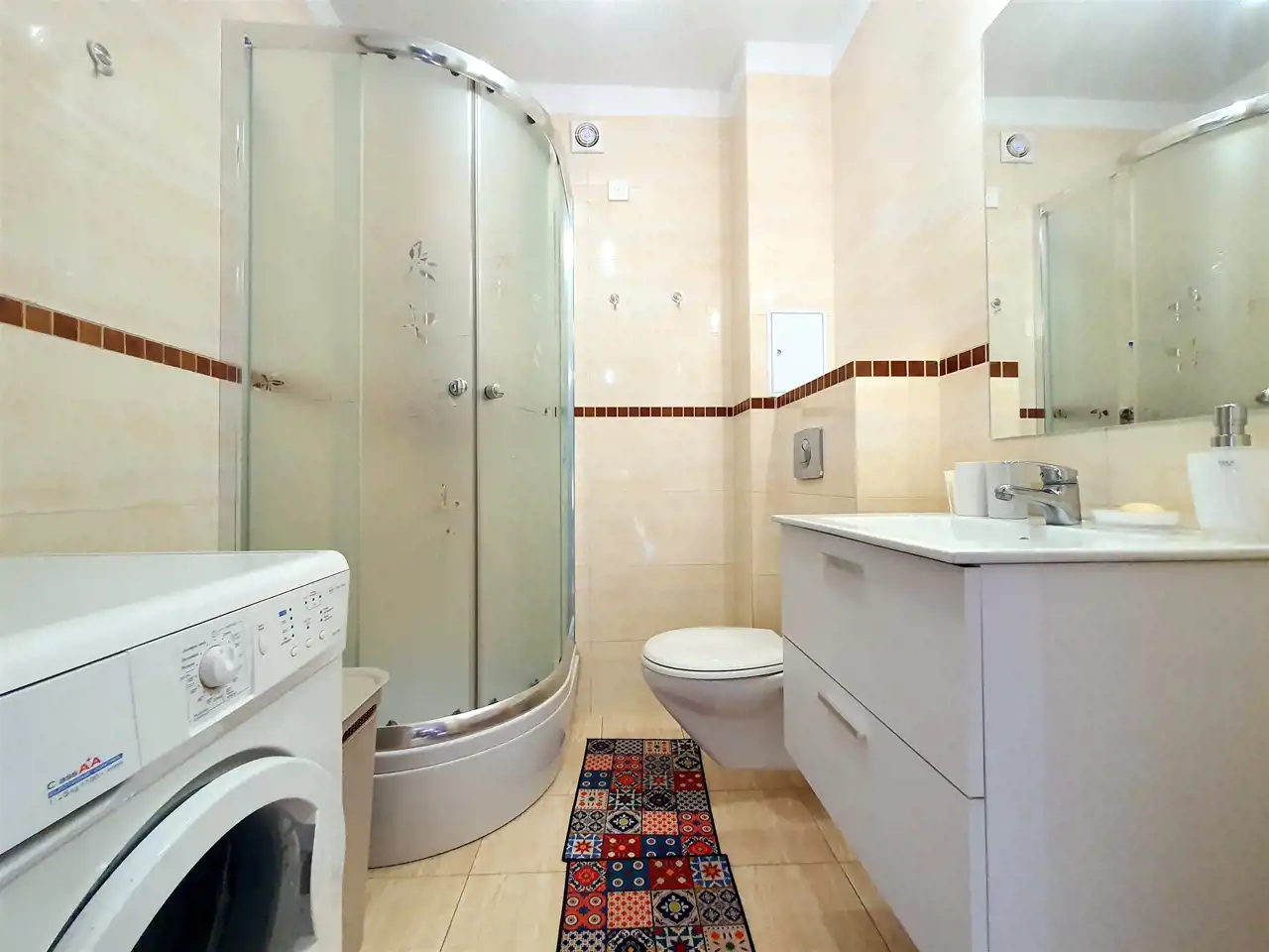 * łazienka z kabiną prysznicową, umywalką i WC (pralka Mastercook, bojler elektryczny Ariston)