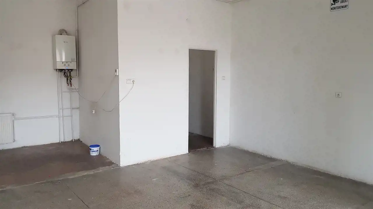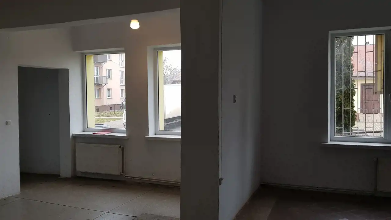 Pierwszy lokal składa się z dwóch pomieszczeń, łazienki i przedsionka, ma powierzchnię użytkową 70 m2. Znajduje się na parterze, posiada trzy okna, jedno bardzo duże z ekspozycją północno-zachodnią. Wyjście bezpośrednio na ulicę pozwala na prowadzenie każdego rodzaju działalności a okna mogą służyć za witryny lub powierzchnię reklamową . Przed budynkiem ogólnodostępne miejsca parkingowe. Tuż obok znajduje się przychodnia NFZ, co pozwala domniemać, ze działalność związana z poprawą zdrowia miałaby dużą szansę na powodzenie.