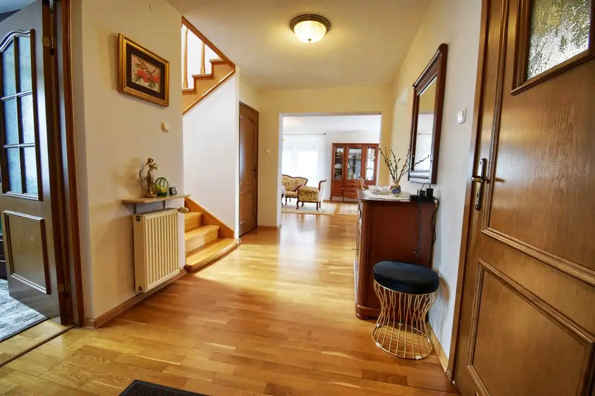 The plot is well landscaped with mature plantings providing privacy and a pleasant environment for relaxation. The property is situated in a quiet, safe neighborhood – ideal for families or those seeking an escape from city noise. Excellent transport connections to Kielce offer quick and convenient access to the city center.