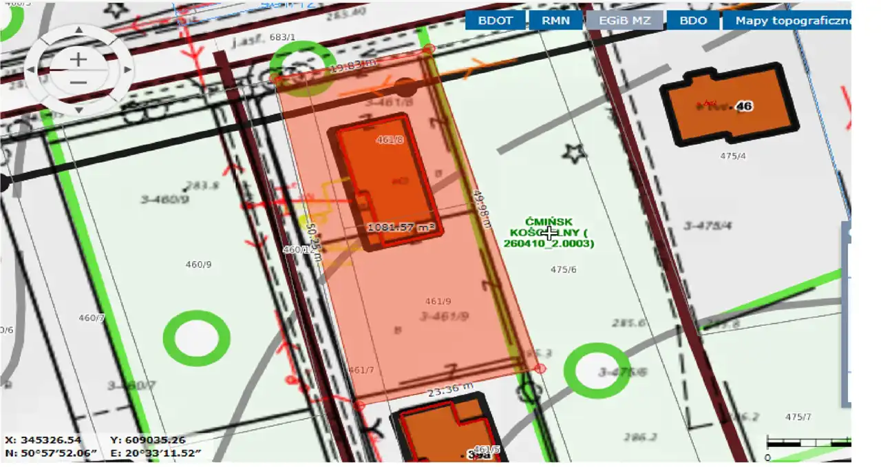 Wymiary działki: 50 m (front)x 20 m.