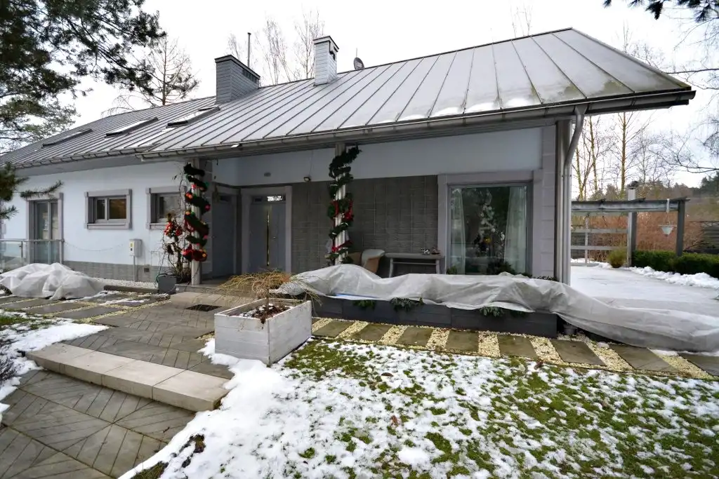 Budynek wykończono przy użyciu najwyższej jakości materiałów. Drzwi, okna, meble oraz armatura wykonane na zamówienie (armatura - Grohe, meble włoskie - Selva). Na parterze ogrzewanie podłogowe (w pokojach ogrzewanie podłogowe kanałowe). W przedpokoju, łazienkach, kuchni - gresy, w pokojach - panele podłogowe.