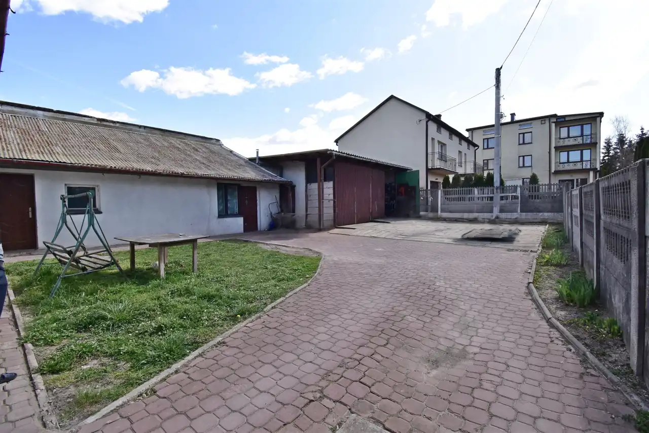 W skład domu wchodzą: 2 pokoje, kuchnia, łazienka z WC, korytarz i przedsionek. na posesji znajduje się tez pomieszczenie gospodarcze oraz garaż.