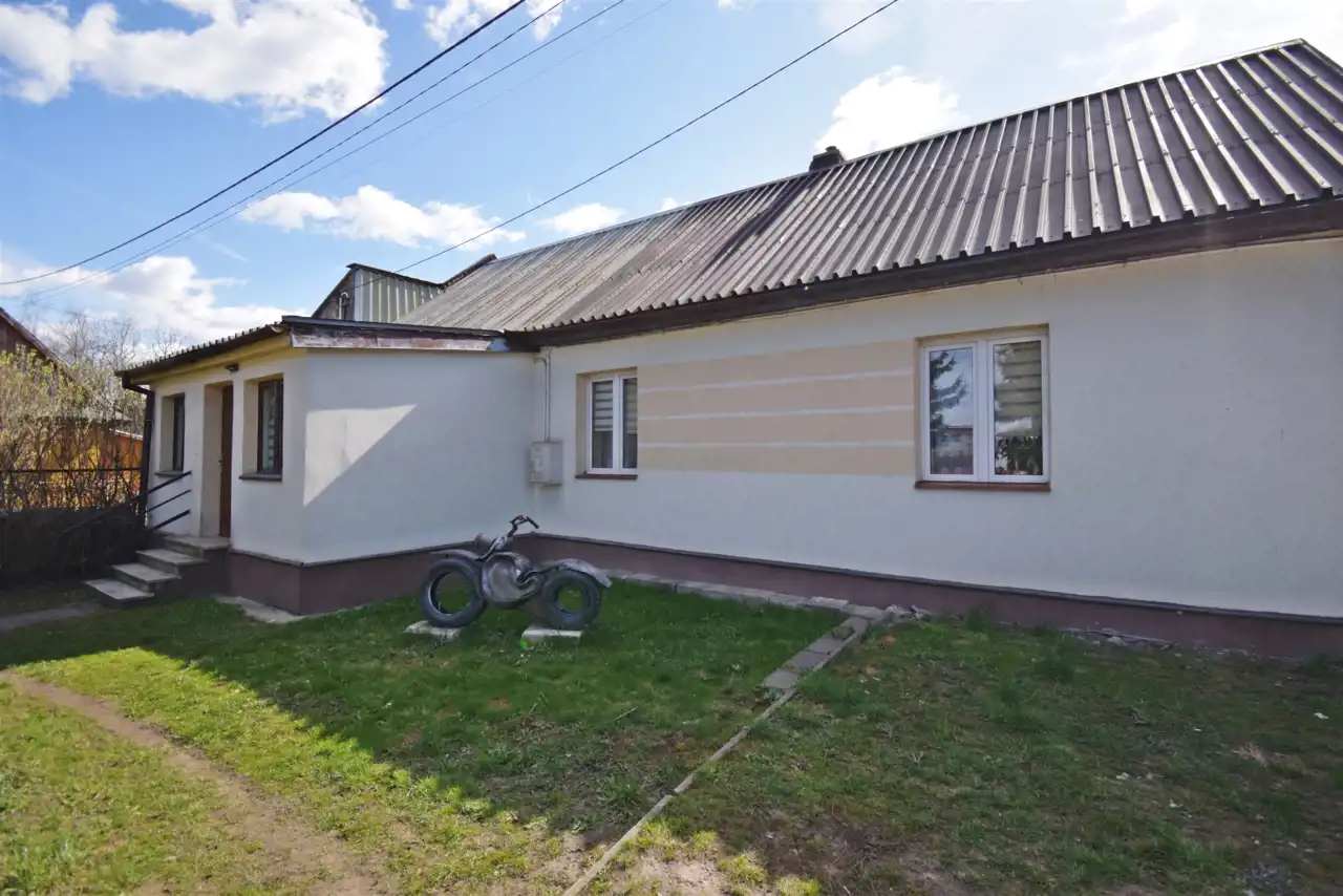 For sale: A house with a total area of 77 m² located on Bugajska Street in Kostomłoty Drugie, Miedziana Góra commune. The property sits on a partially developed plot of 508 m².