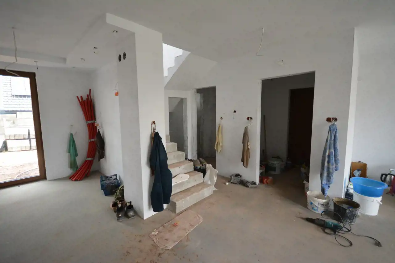 Dom wykończony zostanie w standardzie deweloperskim, obejmującym takie rozwiązania materiałowe jak: