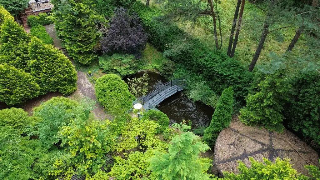 Nieruchomość położona jest w sąsiedztwie domów jednorodzinnych i letniskowych, w atrakcyjnej i spokojnej lokalizacji. Teren w całości ogrodzony, zadbany, z wieloletnimi nasadzeniami, ozdobnym oczkiem wodnym i podjazdem wyłożonym kostką brukową.