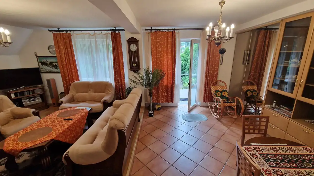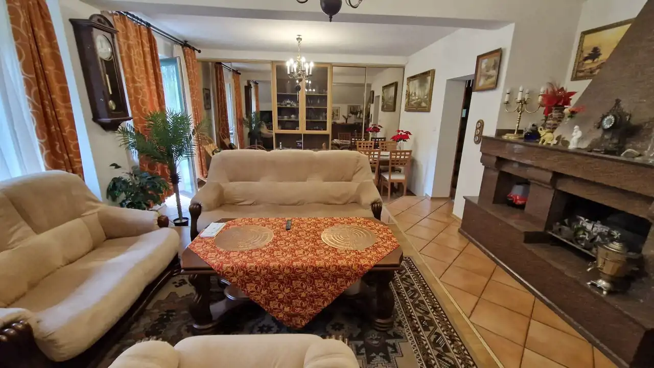 The property is located among single-family and recreational houses, in an attractive and quiet location. The area is fully fenced, well maintained, with long-standing plantings, an ornamental pond and a driveway paved with concrete blocks.