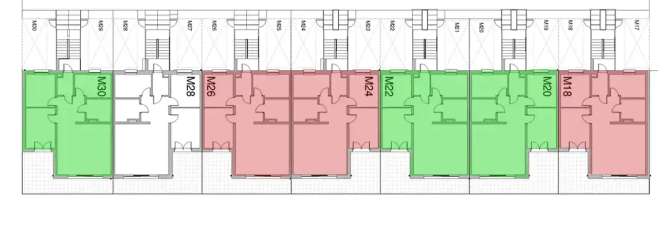 Mieszkania w stanie deweloperskim z bardzo korzystnymi układami pomieszczeń, które pozwalają doskonale zaaranżować przestrzeń tak, aby była funkcjonalna. Głównym pomieszczeniem jest duży salon z aneksem kuchennym oraz wyjściem na taras lub ogród. W salonie duże solidne przeszklenia. Trzy lub cztery niezależne oraz nieprzechodnie ustawne sypialnie. Łazienka wraz z WC bardzo przestronna.